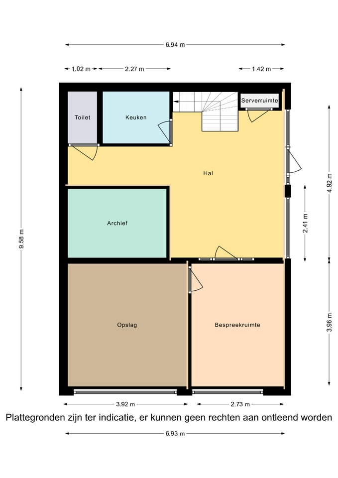 - begane grond maximale vrije hoogte ca 2,9 meter
