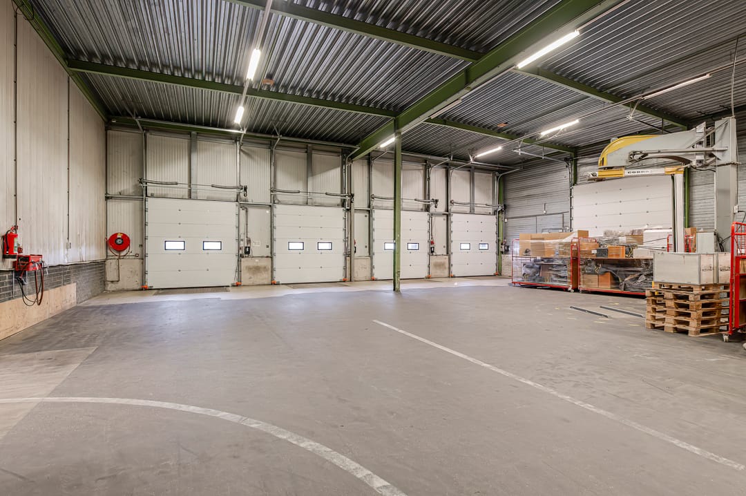De bedrijfsruimte is via meerdere overheaddeuren aan het buitenterrein te bereiken, wat zorgt voor een efficiënte goederenstroom.