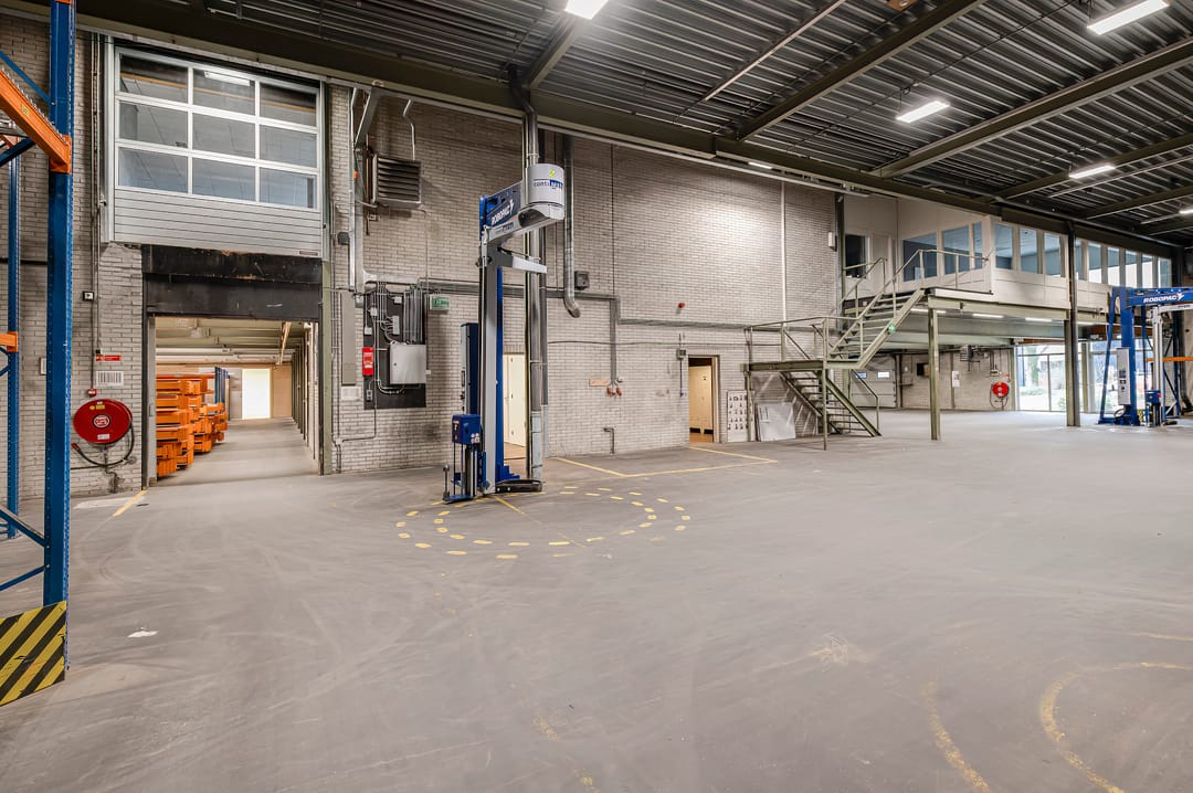 - Loading docks, overheaddeuren, krachtstroom, betonvloer, heater, toilet, airconditioning, mechanische ventilatie, inbouwarmaturen en te openen ramen
