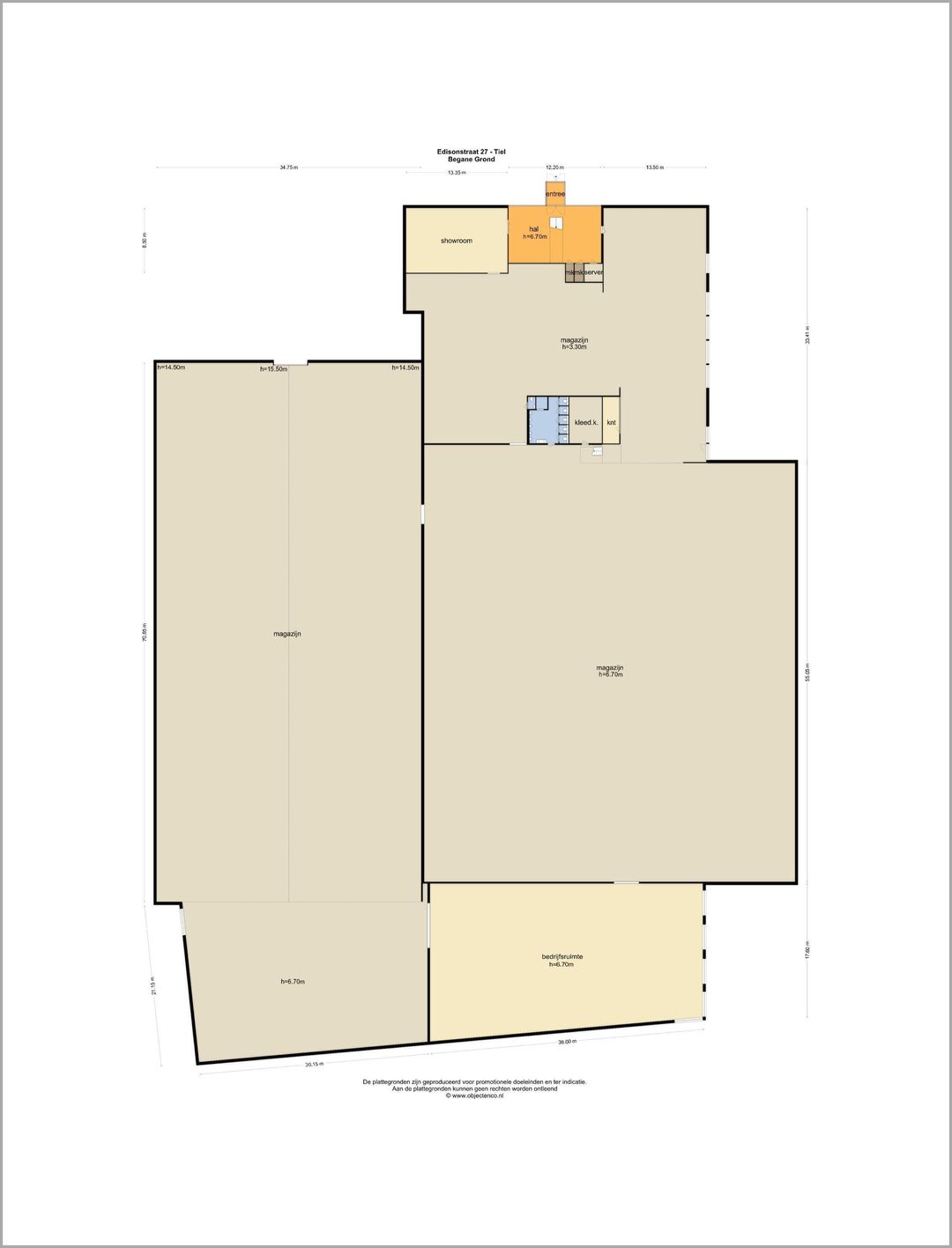 De door Van der Horst Bedrijfsmakelaardij en verhuurder verstrekte informatie dient uitsluitend te worden gezien als een uitnodiging tot nader overleg. Hoewel de informatie met de grootst mogelijke zorg is samengesteld, wordt noch door de makelaar, noch door diens opdrachtgever ingestaan c.q. aansprakelijkheid aanvaard voor de juistheid dan wel volledigheid van de verstrekte, nog te verstrekken of vermelde gegevens. Aan afwijkingen in de tekst, maten en tekeningen kunnen geen rechten worden ontleend.