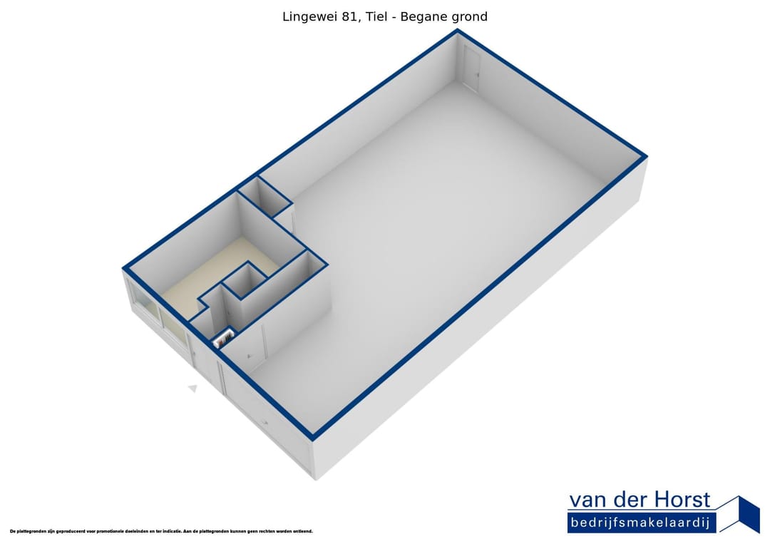 De door Van der Horst Makelaardij en verhuurder verstrekte informatie dient uitsluitend gezien te worden als een uitnodiging tot nader overleg of voor het uitbrengen van een bod. Hoewel deze informatie met grootst mogelijke zorg is samengesteld, wordt noch door de makelaar, noch door diens opdrachtgever ingestaan c.q. aansprakelijkheid aanvaard voor de juistheid dan wel volledigheid van de verstrekte, nog te verstrekken of vermelde gegevens. Aan afwijkingen in de tekst, maten en tekeningen kunnen dan ook geen rechten worden ontleend.