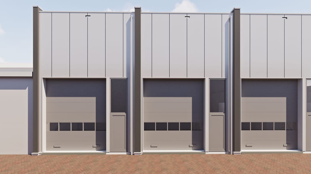 - overheaddeur 3.8 meter breed en 4.5 meter hoog