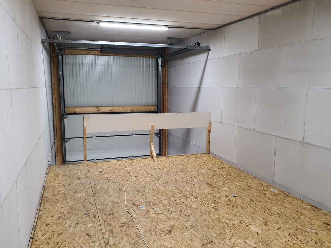 De Uniekbox is uitgevoerd met een segmentendeur met ingebouwde loopdeur en daarnaast zijn er diverse opties toegevoegd zoals bijvoorbeeld een verdiepingsvloer als kantoorruimte, keukenblok met inbouwboiler en een toilet.