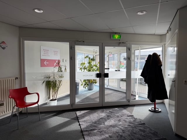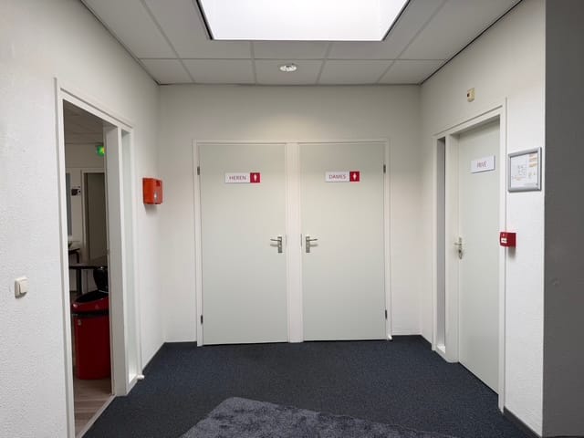 -Entree met toilet, kantoorruimte verdeeld in drie grote kantoorkamers