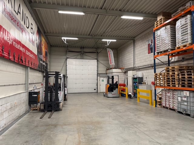 - Lichtstraten, overheaddeuren, krachtstroom, betonvloer, heater, airconditioning en inbouwarmaturen