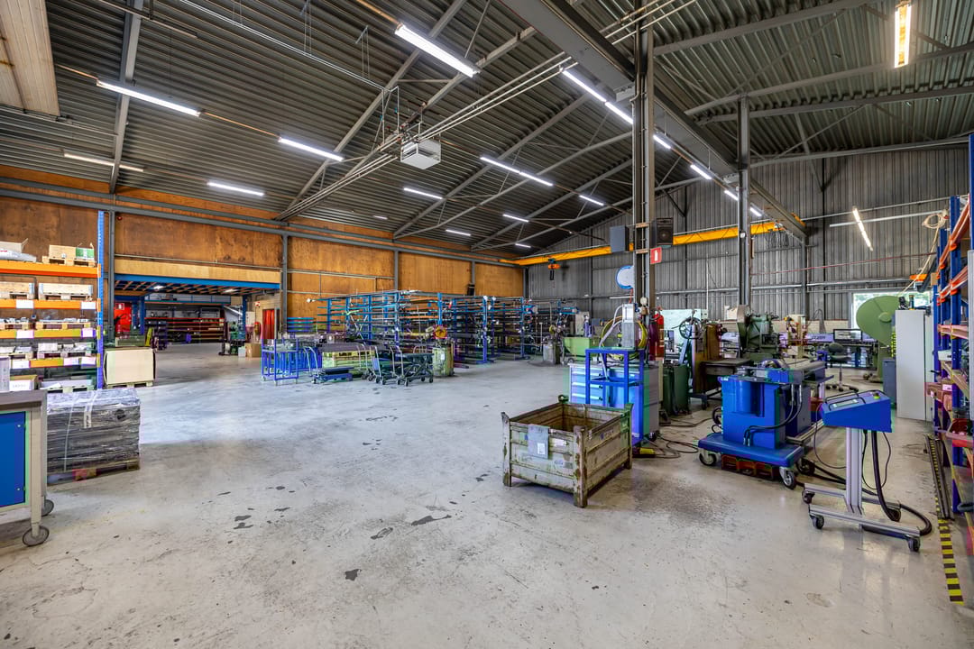 - Airconditioning, lichtstraten, overheaddeuren, krachtstroom, betonvloer, heater, toilet, pantry, inbouwarmaturen en te openen ramen