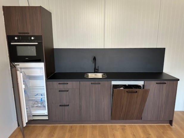 Prijs is inclusief in de unit aangebrachte meerwerk als trap, verdiepingsvloer, pantry, keuken, toilet, scheidingswand, elektra, extra stopcontacten etc.
