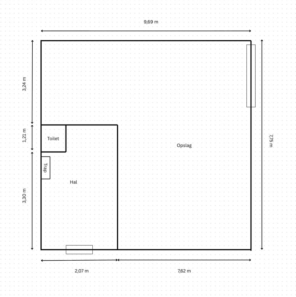 Na binnenkomst betreed je de hal, waar zich de trapopgang naar de eerste verdieping, het toilet en de meterkast bevinden. Vanuit de hal is er tevens toegang tot het magazijn. Dit magazijn beschikt over een raampartij en een overheaddeur. Verder is er op de begane grond nog een separate wasbak en lage afvoerput aanwezig.