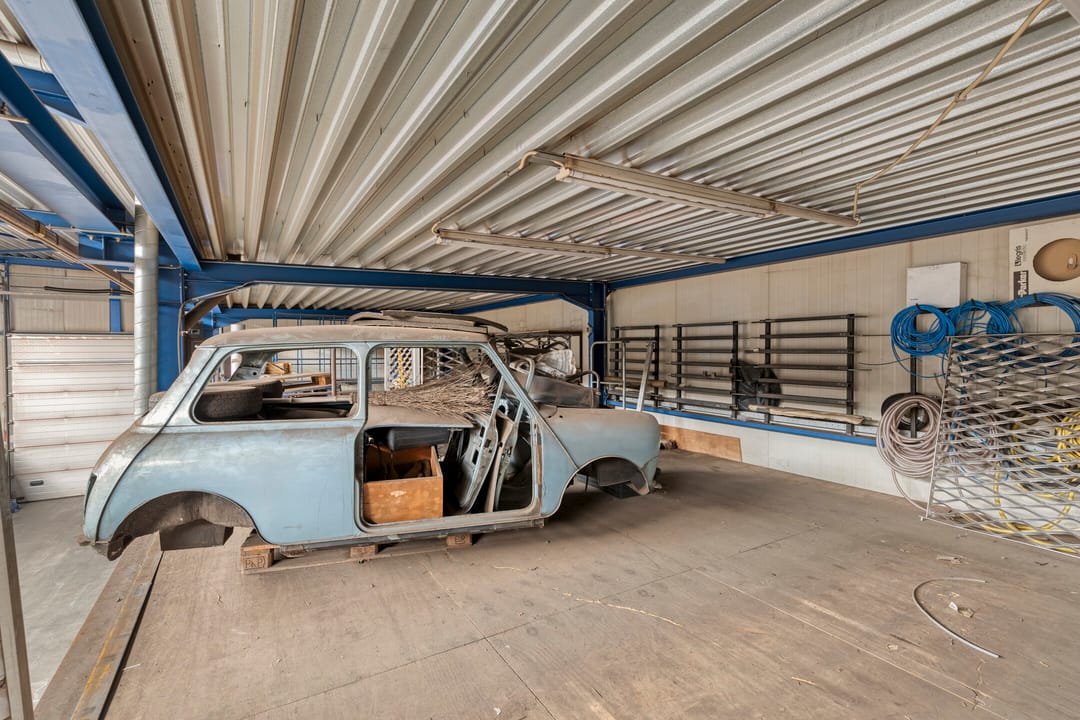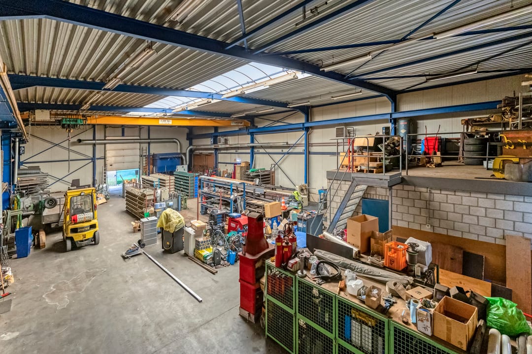 - Lichtstraten, overheaddeuren, krachtstroom, betonvloer, heater, toilet en te openen ramen