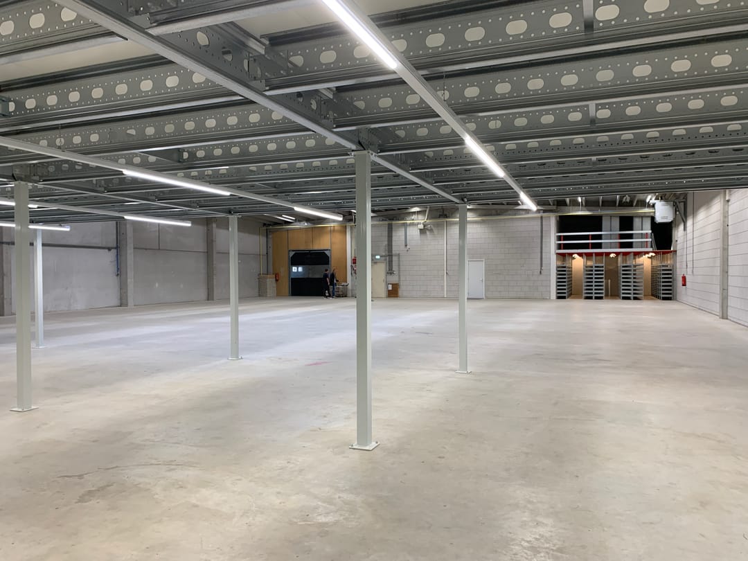 - Lichtstraten, overheaddeuren, krachtstroom, betonvloer, heater, inbouwarmaturen en te openen ramen
