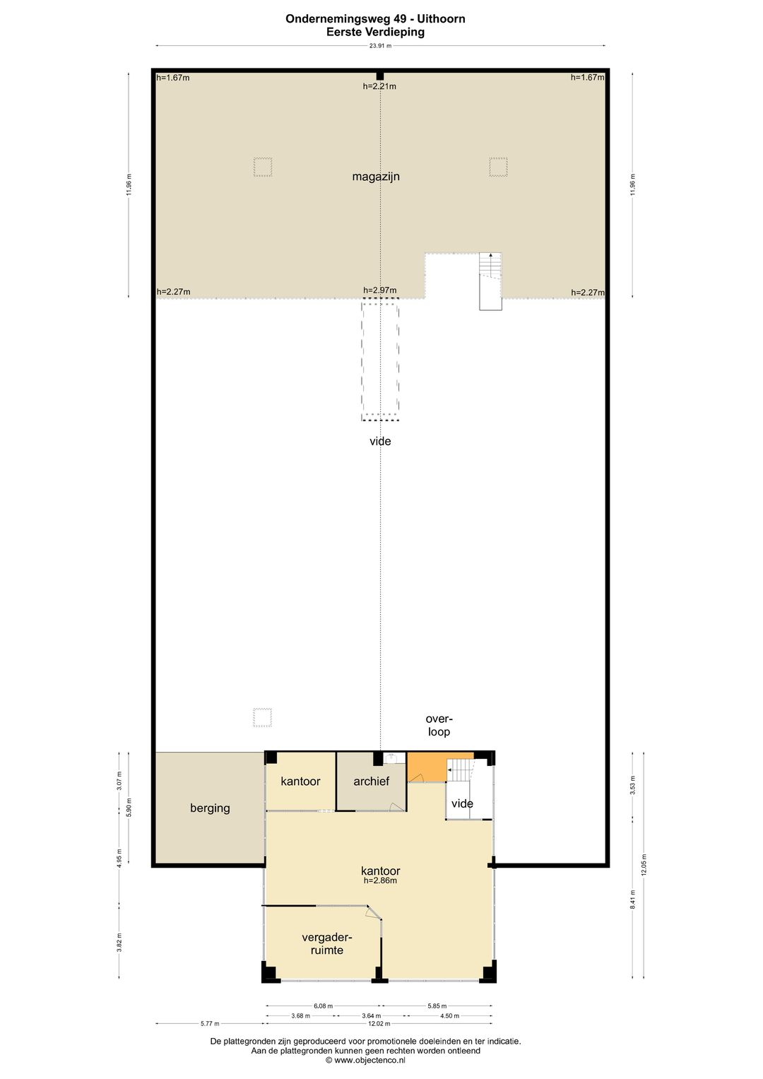 • Vrije hoogte tussen ca. 4,10 meter en ca. 5,80 meter