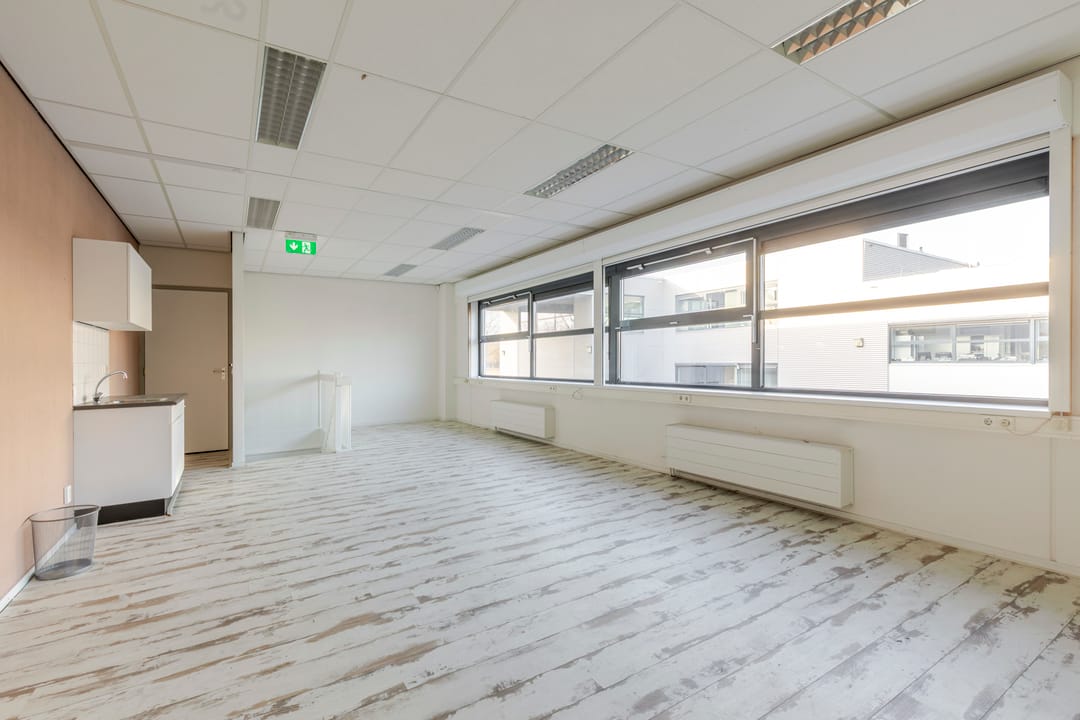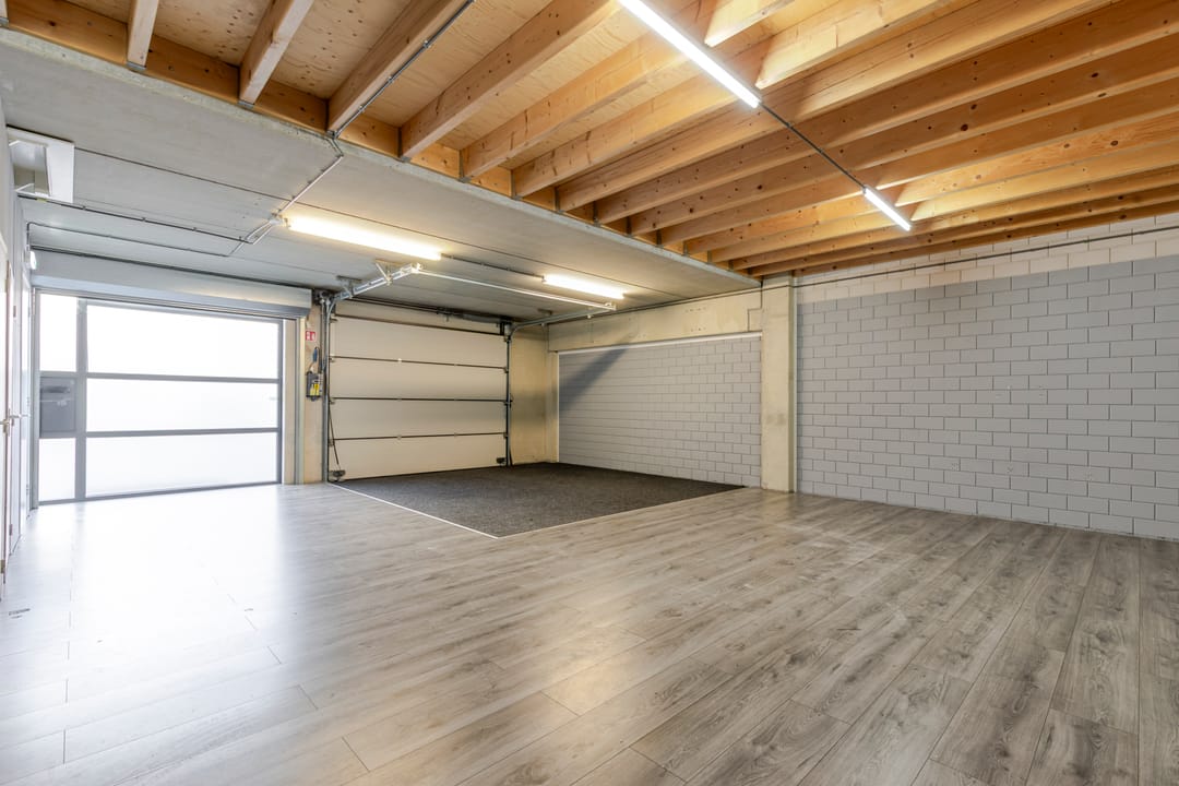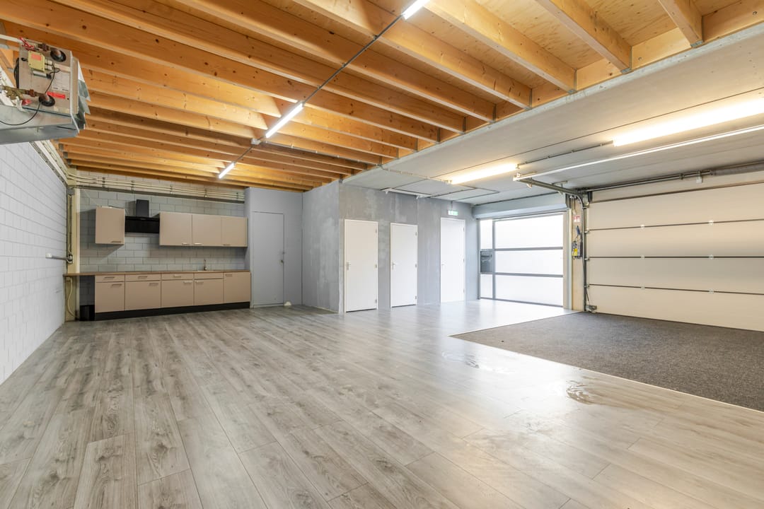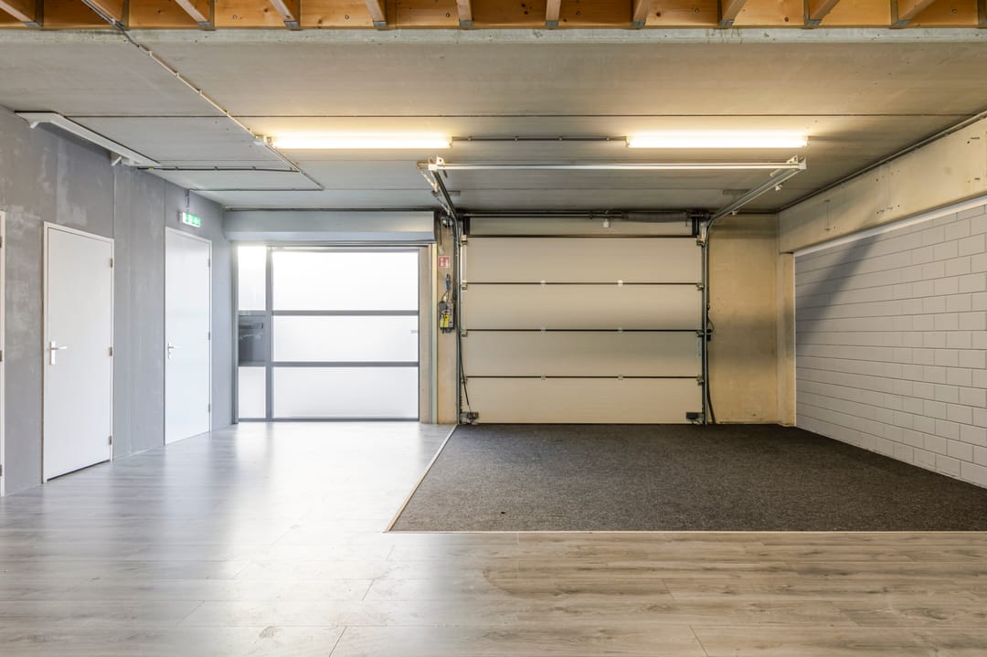 - Overheaddeuren, betonvloer, heater, mechanische ventilatie, inbouwarmaturen en te openen ramen