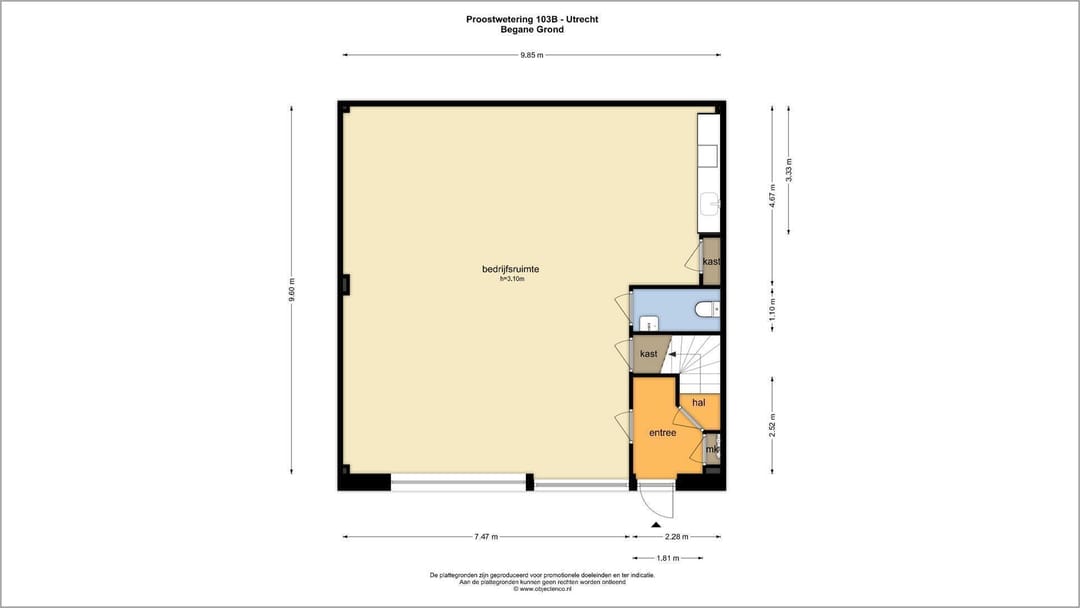 - begane grond: ca. 103,51 m² (entree en bedrijfsruimte)