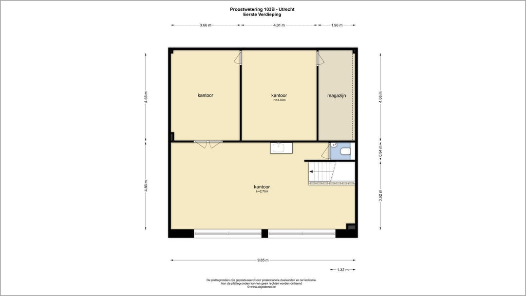 - 1e verdieping: ca. 103,52 m² (kantoorruimte)