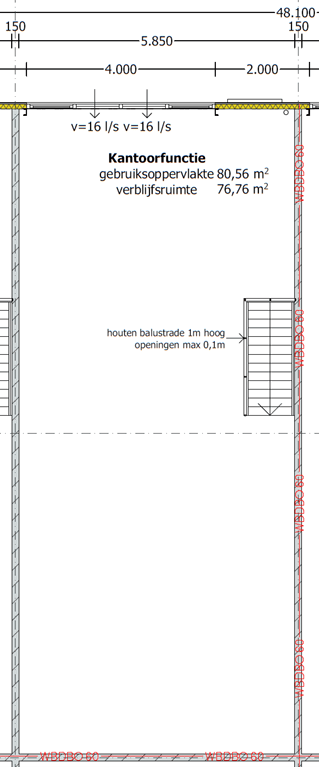 · ca. 84 m² b.v.o. kantoorruimte op de verdieping.