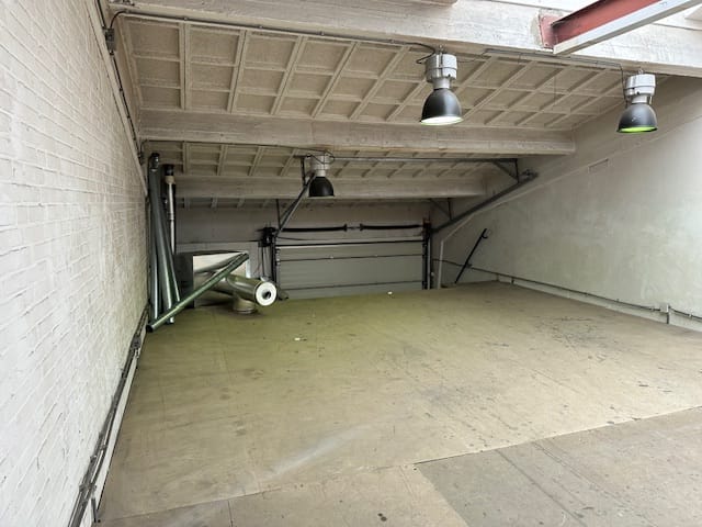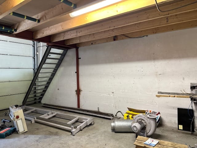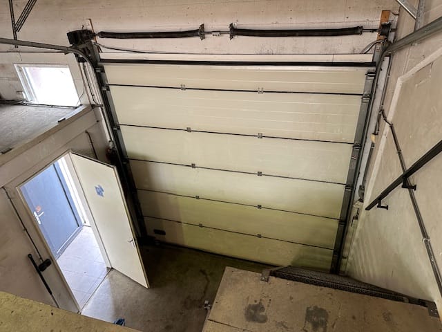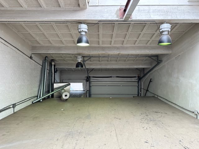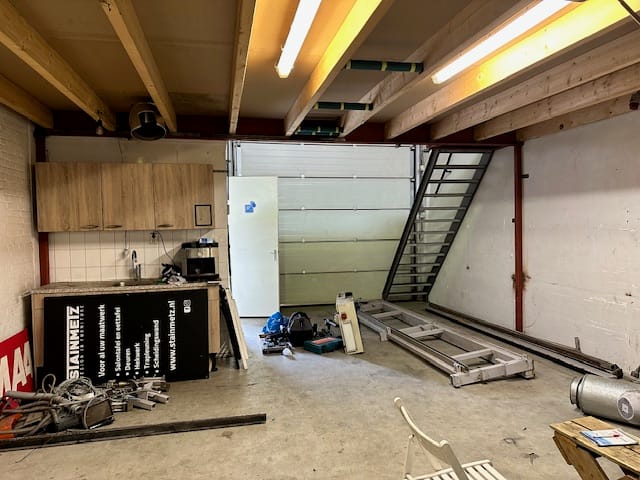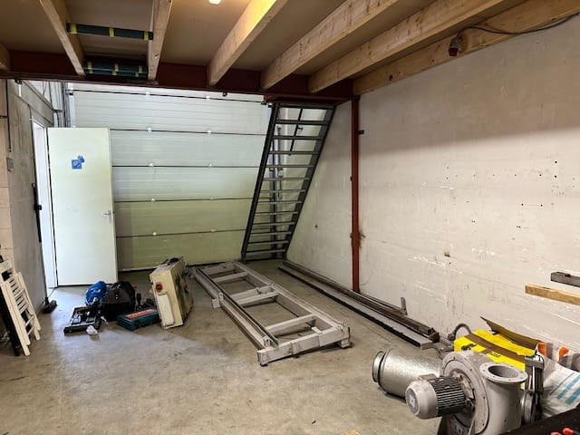 - Overheaddeuren, betonvloer, toilet en pantry