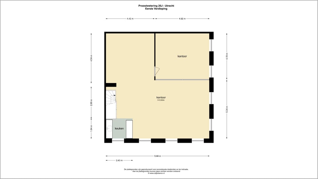 Ten westen van Utrecht, op het goed bereikbare bedrijventerrein aan de Proostwetering, bieden wij deze multifunctionele bedrijfsruimte van ca. 179,8 m² v.v.o. aan. De ruimte is ideaal voor kleine tot middelgrote ondernemers dankzij de combinatie van een praktische opslagruimte op de begane grond en een complete kantoorverdieping op de eerste etage.