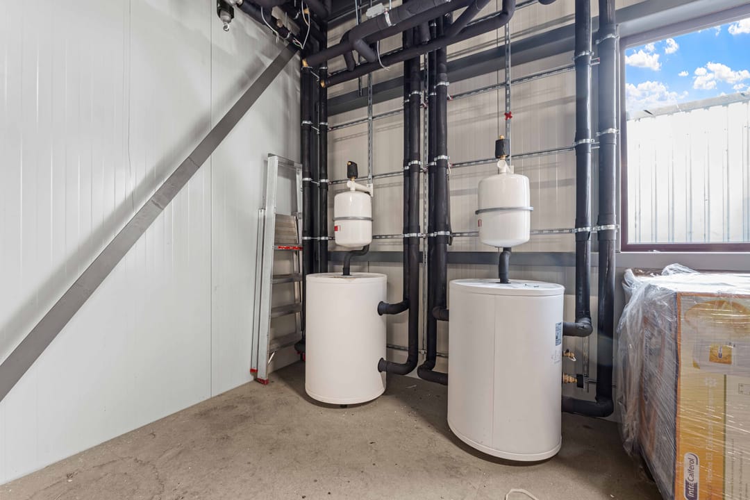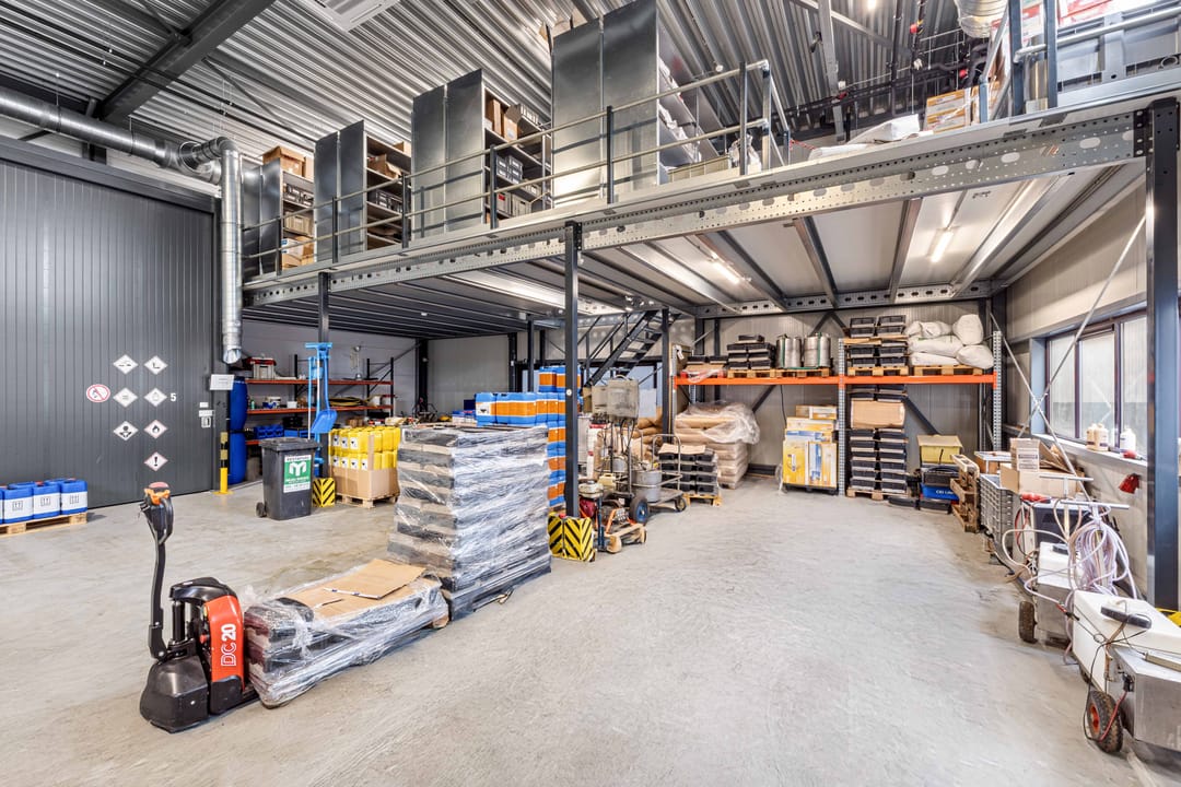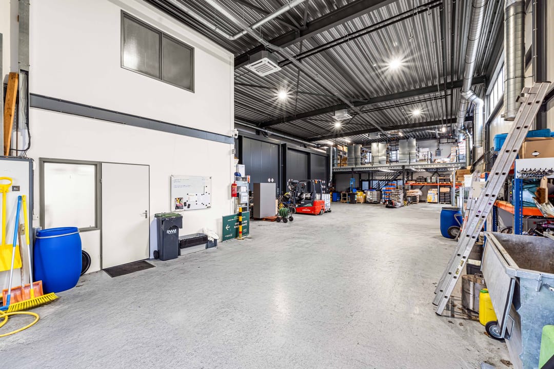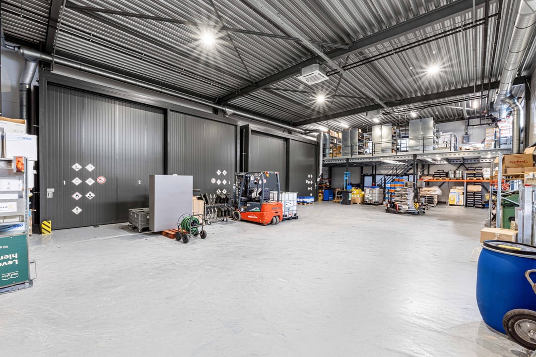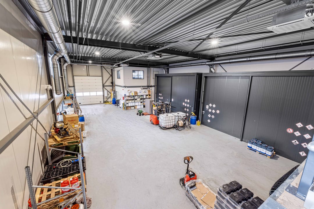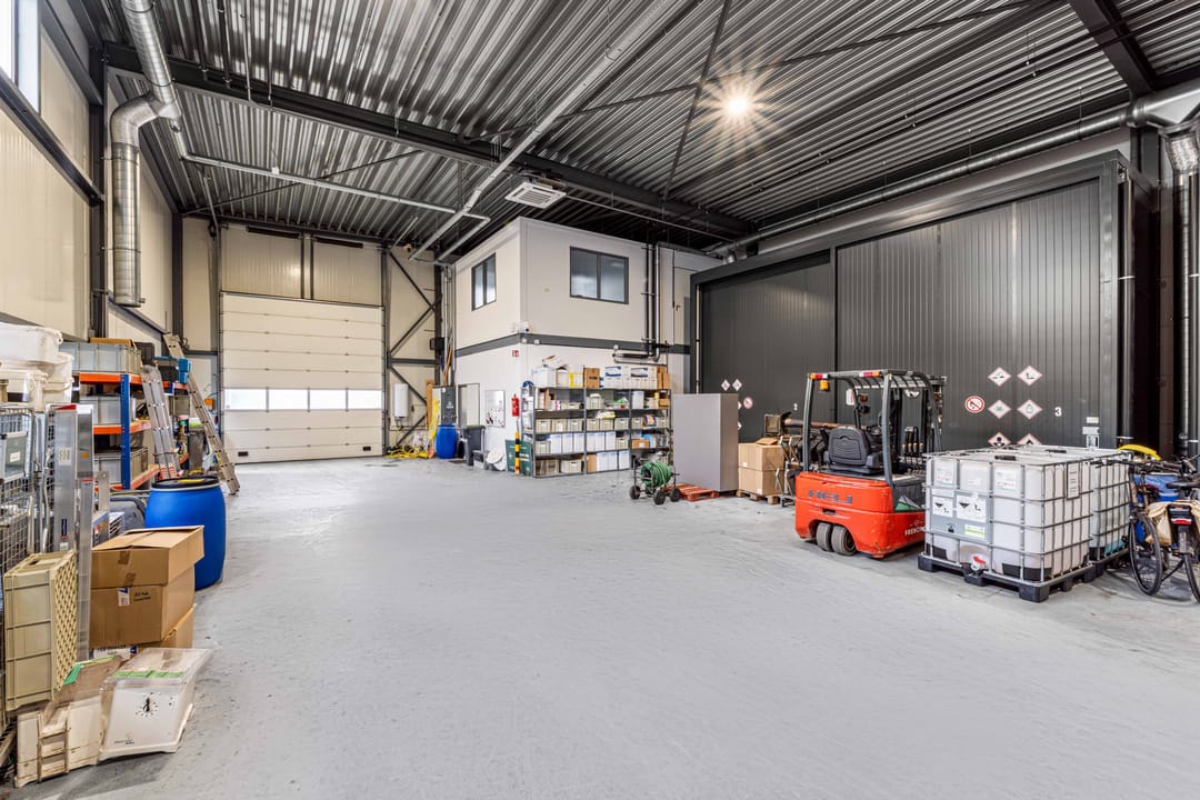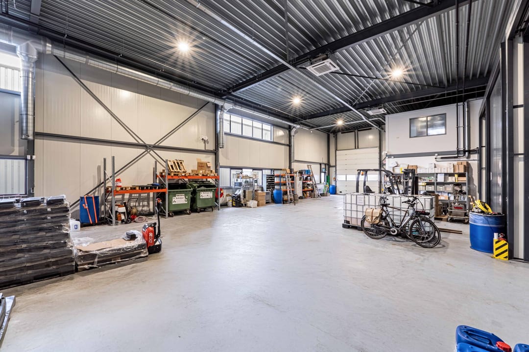 - Lichtstraten, overheaddeuren, krachtstroom, betonvloer, heater, toilet en pantry