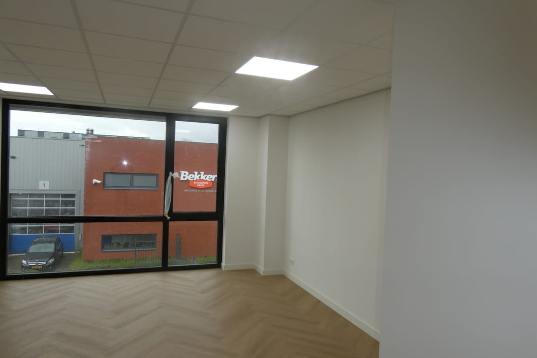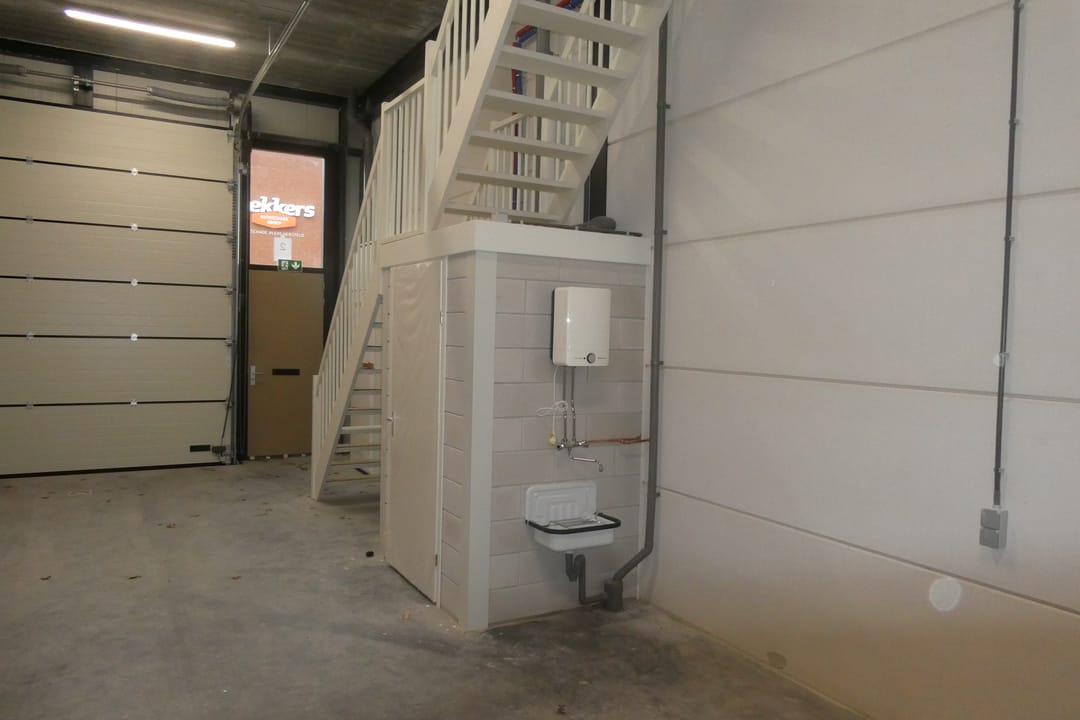 - Airconditioning, overheaddeuren, krachtstroom, betonvloer, toilet, pantry, inbouwarmaturen en te openen ramen