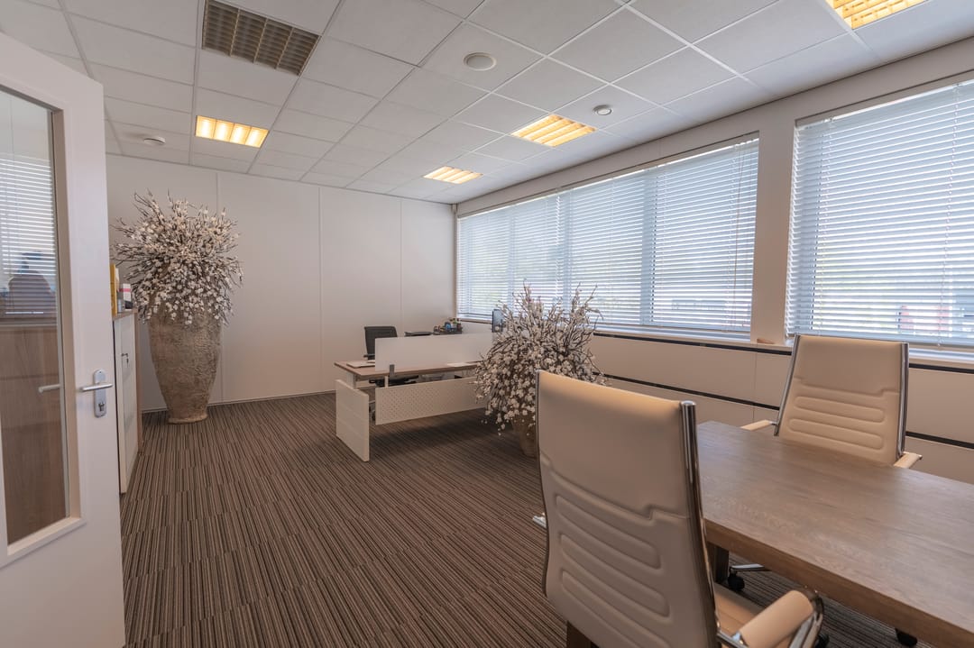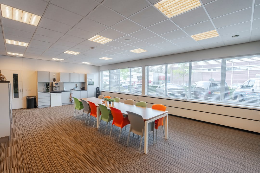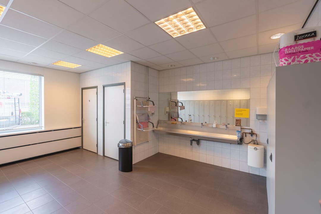 - Lichtstraten, overheaddeuren, krachtstroom, betonvloer, heater, toilet, pantry, airconditioning, inbouwarmaturen en te openen ramen