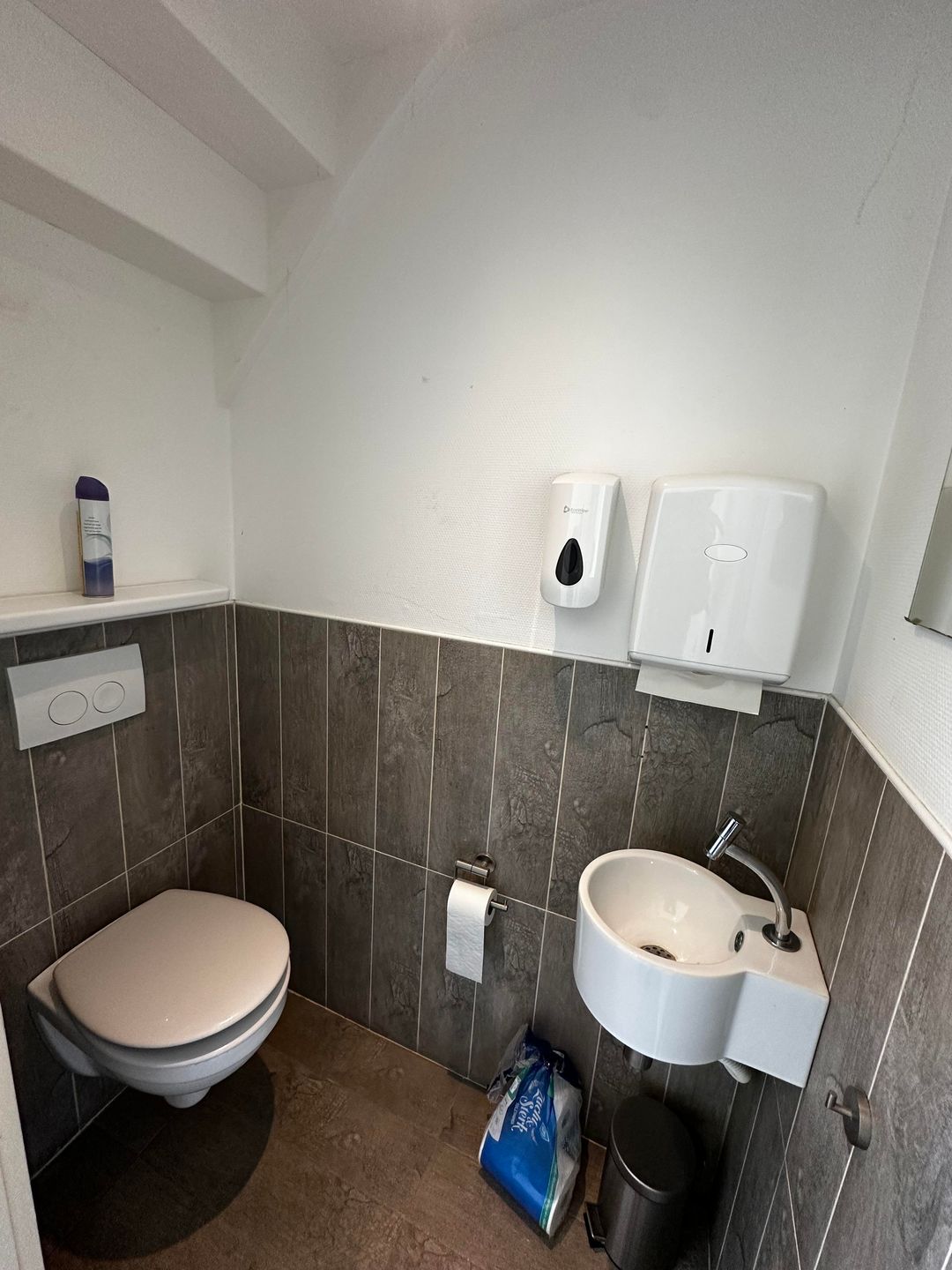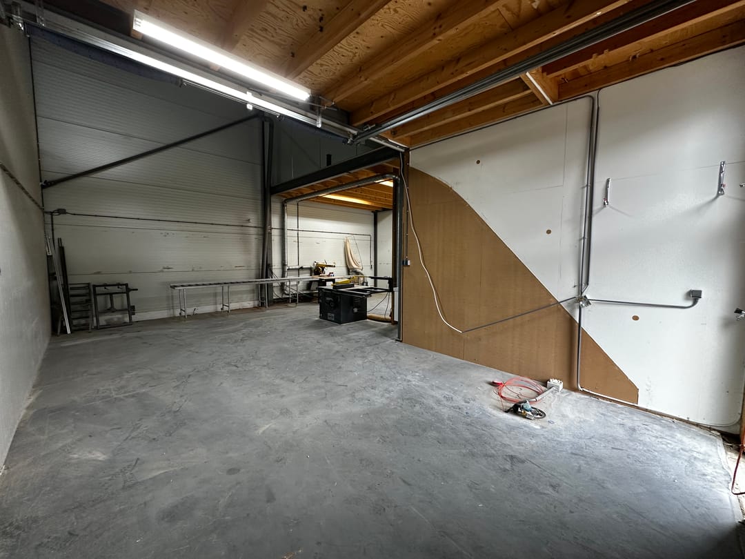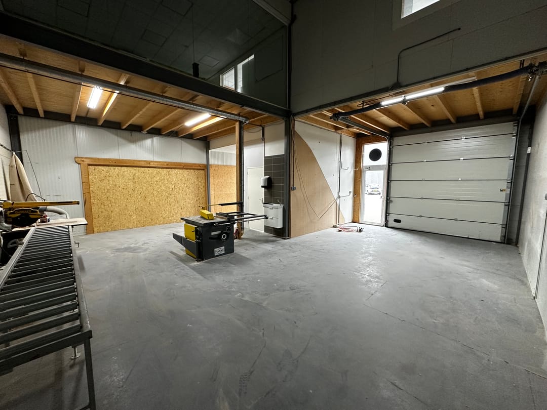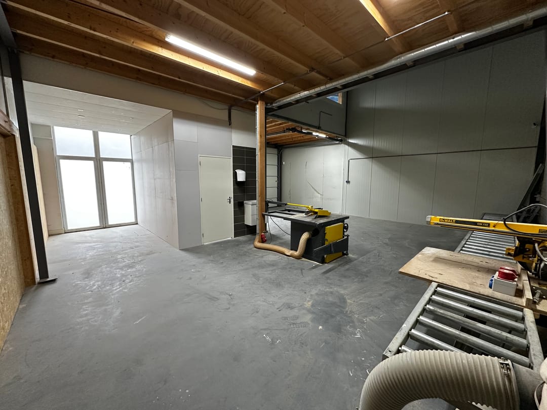 - Overheaddeuren, krachtstroom, betonvloer, toilet, pantry, airconditioning en te openen ramen