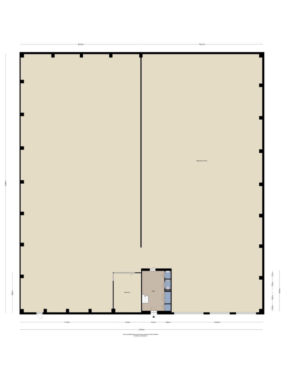 Bedrijfshal van ca. 1.475 m² BVO en kantoorruimte van ca. 116 m² BVO.