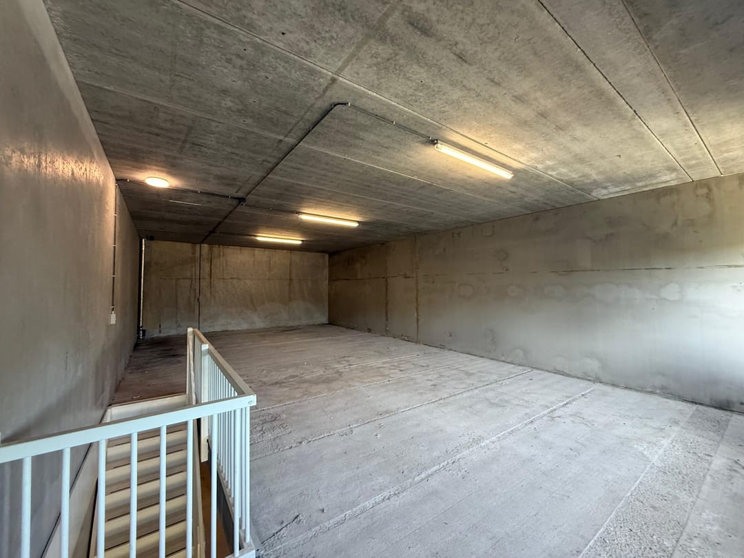 - Overheaddeuren, betonvloer en te openen ramen