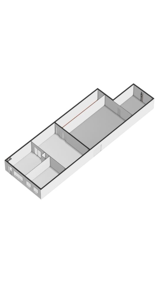 Een gedeelte van de bedrijfshal is verkocht aan een aangrenzend perceel, waardoor de bedrijfshal niet meer rechthoekig is aan de achterzijde.