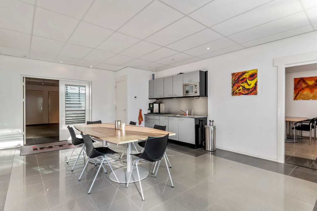 Entree/hal, meterkast, ruime kantine met pantryblok, toiletruimte, kantoorkamer, showroom, archiefruimte en een bedrijfshal.