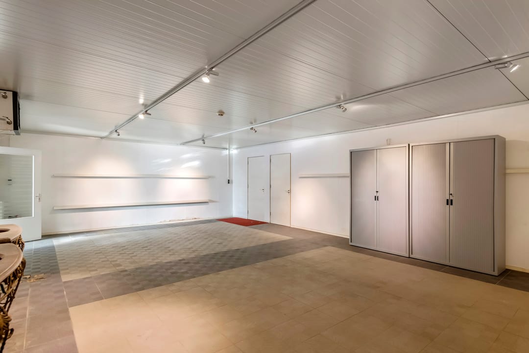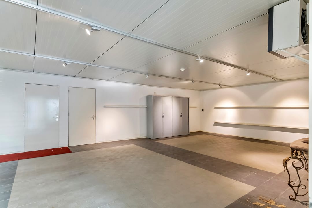 - Overheaddeuren, betonvloer, heater, toilet, pantry en inbouwarmaturen