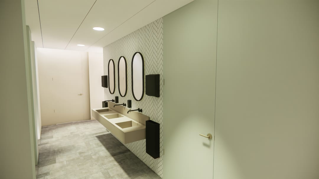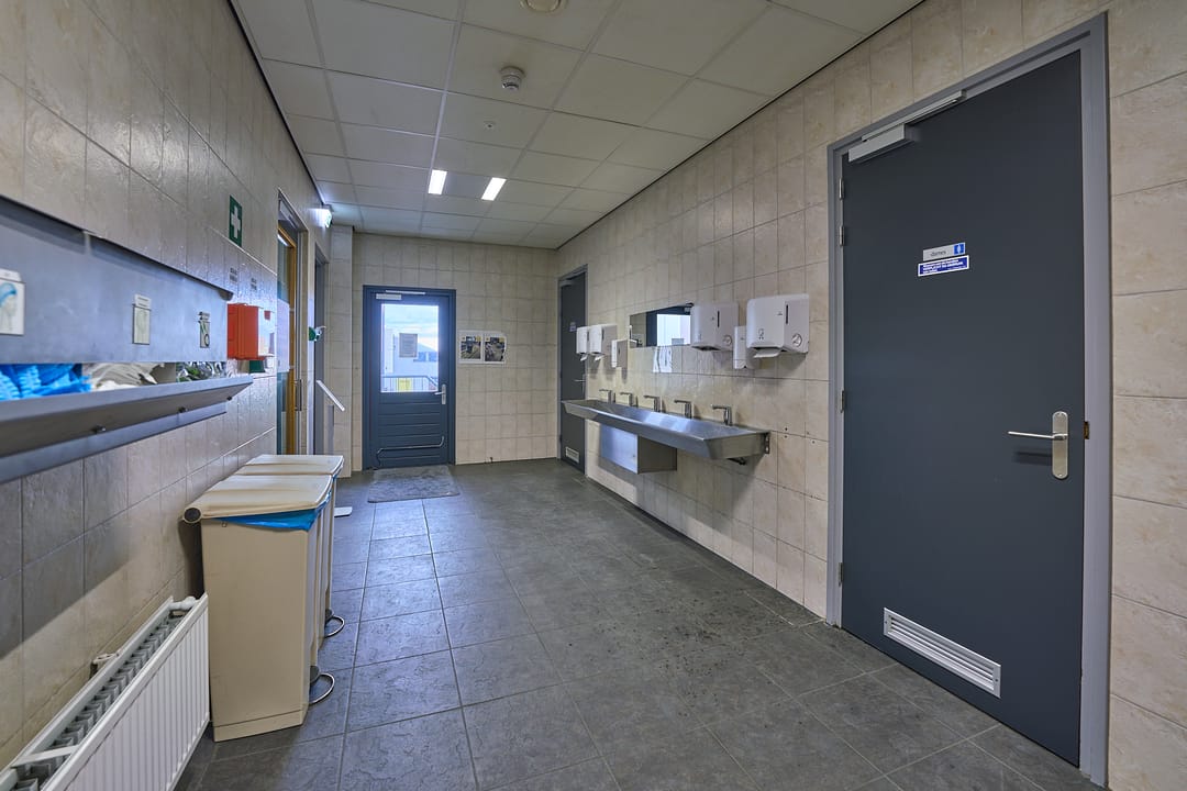- De receptie en het sanitair zijn afgewerkt met keramische tegels;