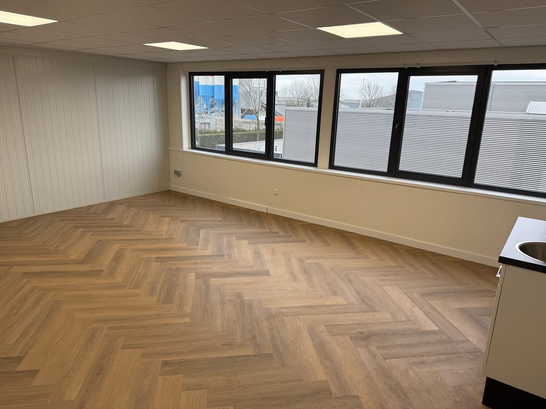De unit heeft een footprint van circa 80 m2 op de begane grond en circa 30 m2 als afgewerkte en dichte entresolvloer met betonnen vloer als zijnde kantoorruimte te gebruiken.