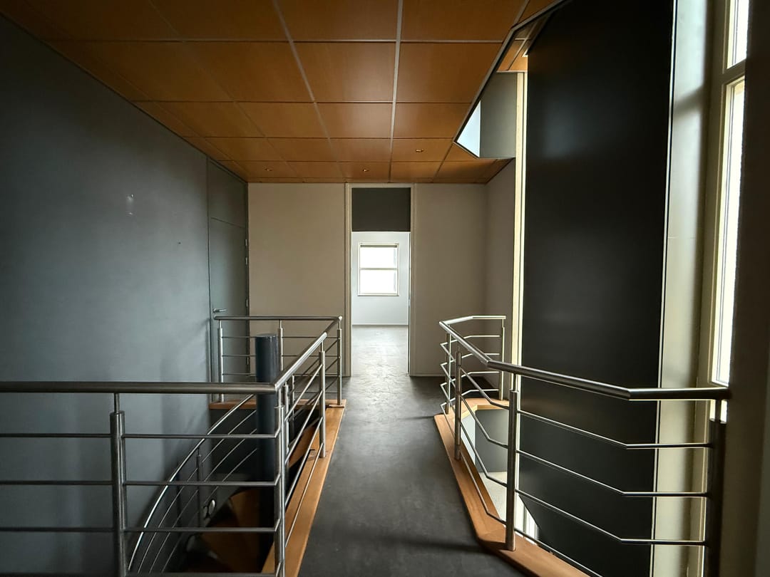 1e verdieping: Overloop. Gedeelde opslag en cv ruimte. Kantoorruimte.