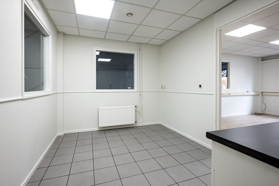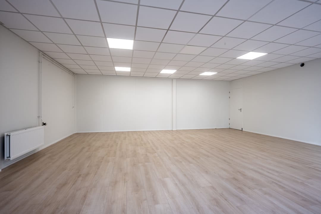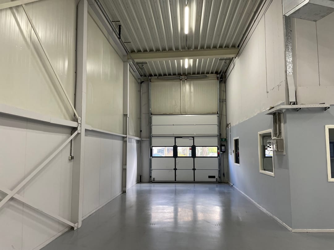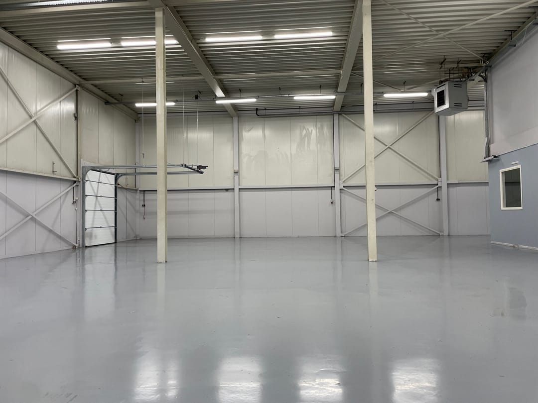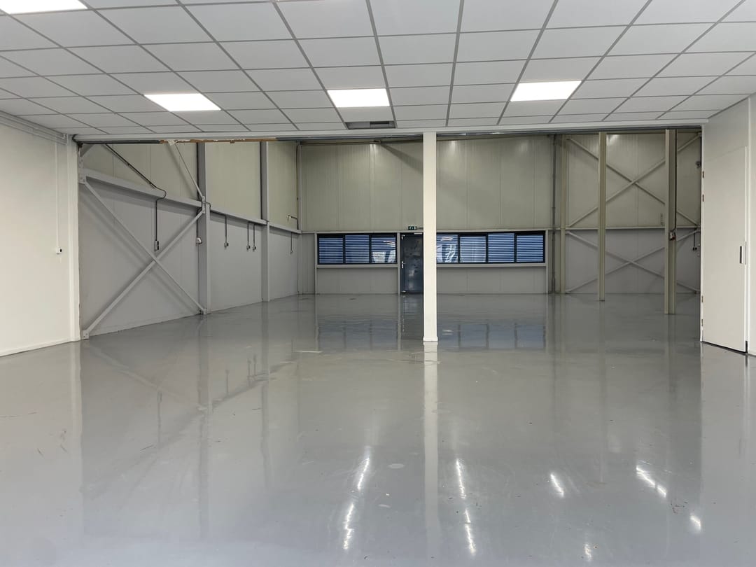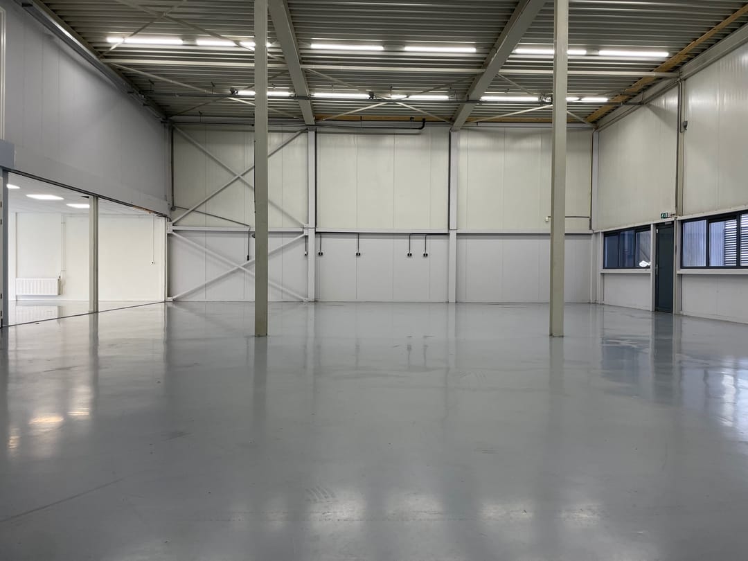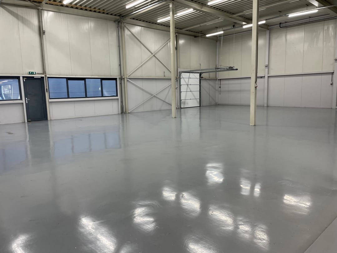 De bedrijfsruimte is voorzien van een epoxyvloer