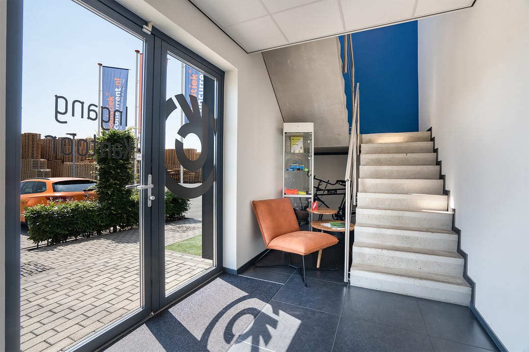 - Overheaddeuren, betonvloer, heater, toilet, inbouwarmaturen en te openen ramen