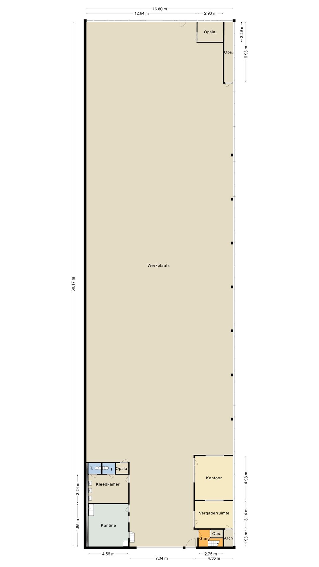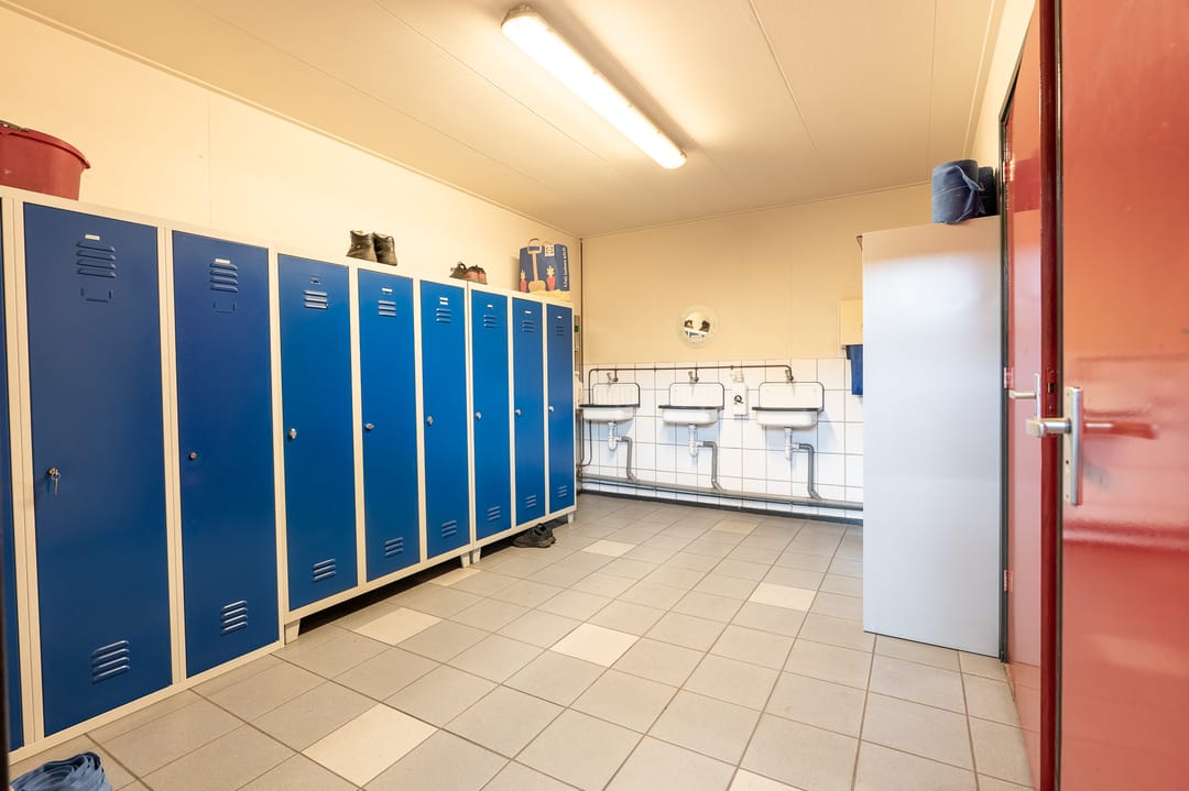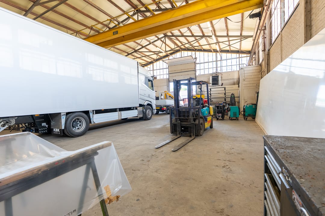 - Overheaddeuren, betonvloer, toilet en inbouwarmaturen
