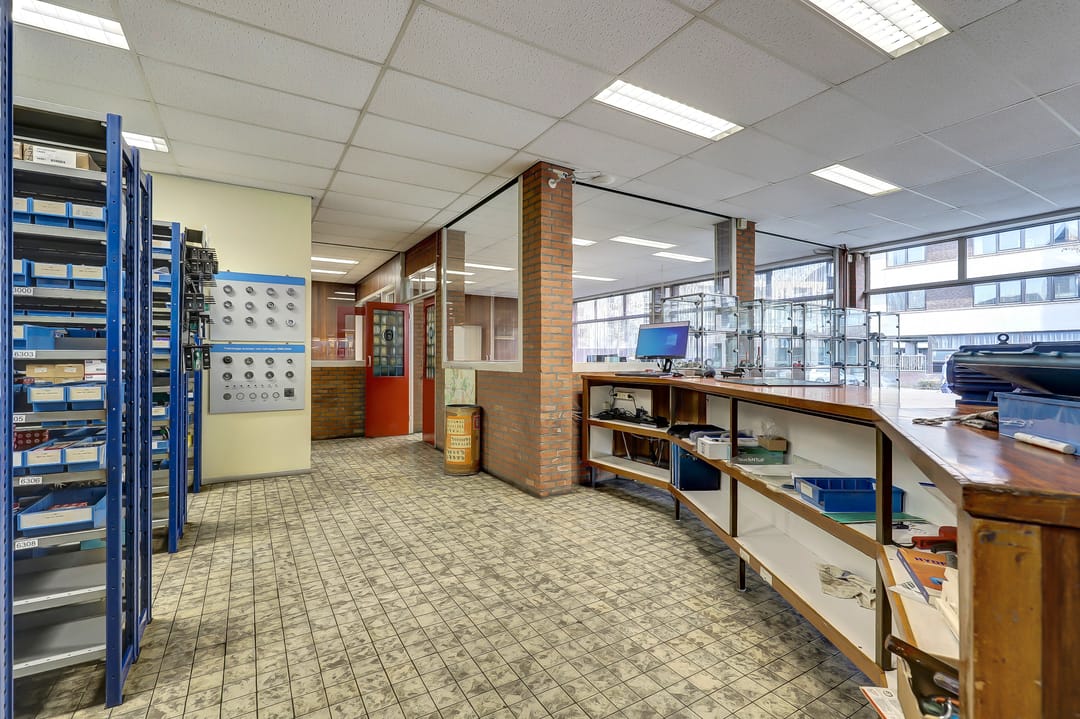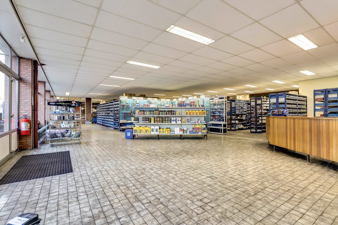 Werkplaats, opslagruimte, showroom en kantoorruimte.