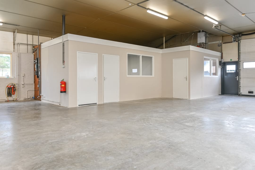 - Overheaddeuren, krachtstroom, betonvloer, heater, toilet en pantry