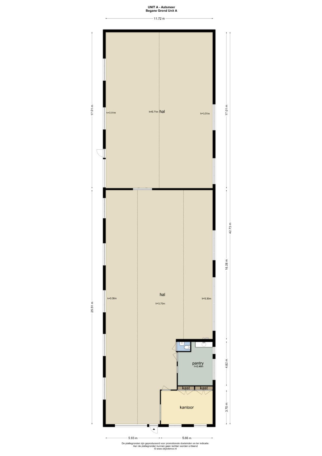 • Vrije hoogten variërend van circa 3,30 tot 5,70 m.