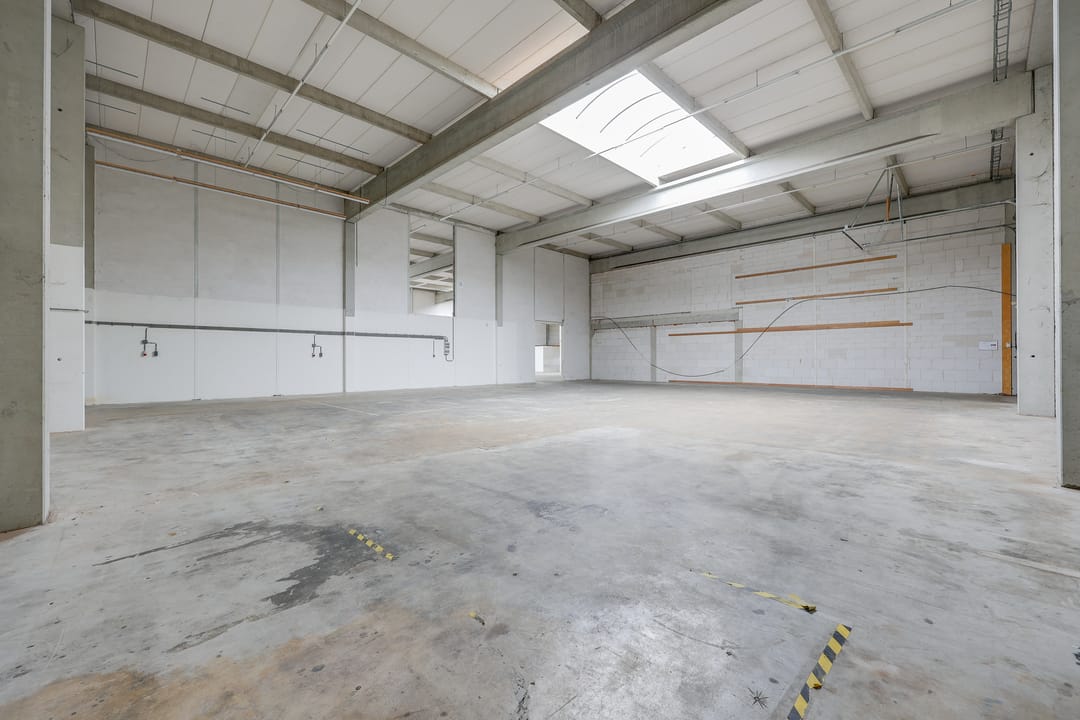 - Lichtstraten, overheaddeuren, krachtstroom, betonvloer, toilet en pantry
