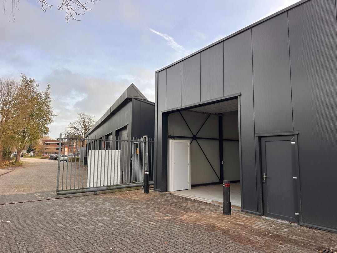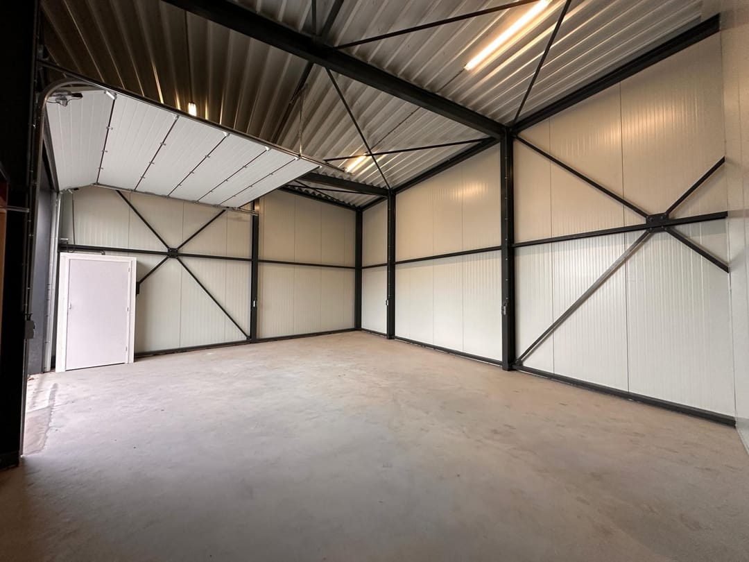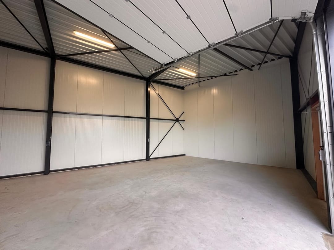 De ruimte is 4,5 meter hoog en voorzien van een elektrische overheaddeur van 4 meter breed en 3,5 meter hoog.