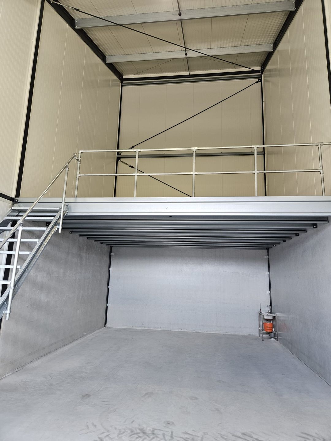 De bedrijfsunit beschikt over een elektrisch bedienbare overheaddeuren (afmeting: 5m¹ x 5 m¹), wasbak met koud water, vaste trap naar entresolvloer en entresolvloer is voorzien van valbeveiliging, tussenmeter elektra.