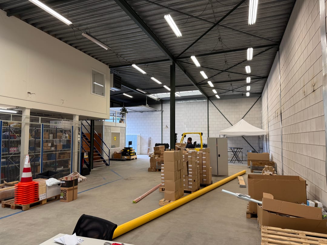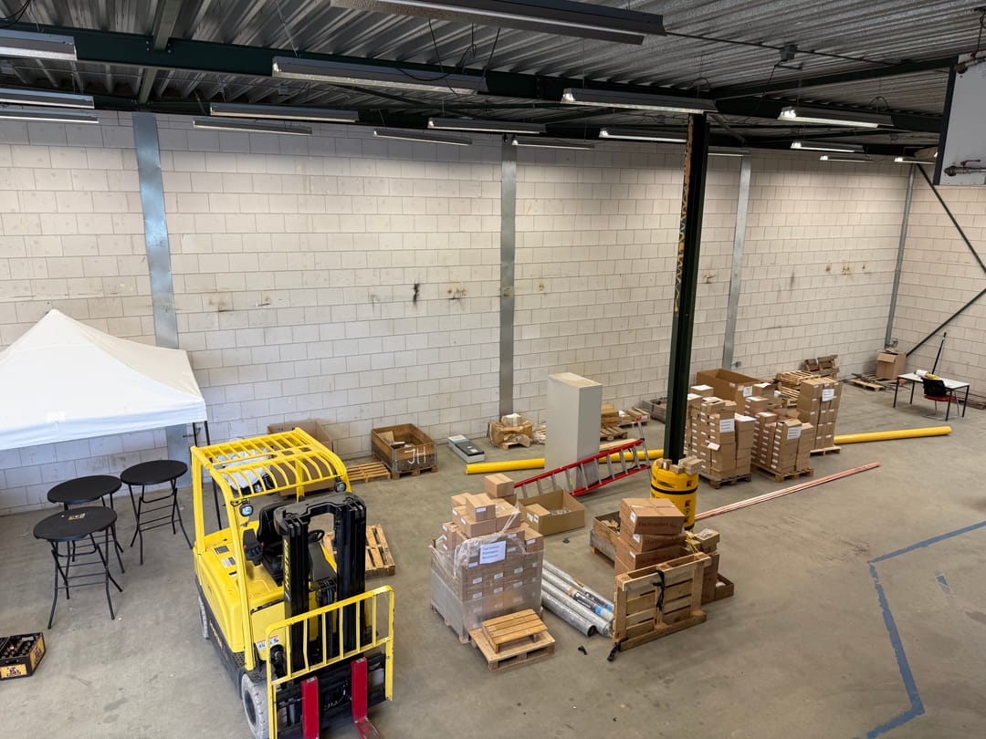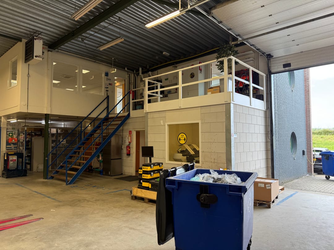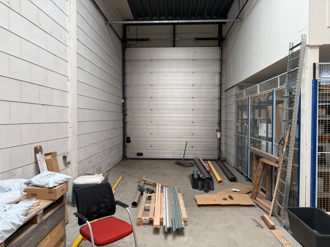 - Lichtstraten, overheaddeuren, betonvloer, heater, toilet en pantry