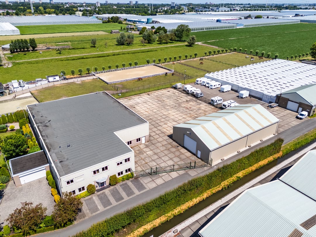 Algemeen: Bedrijfspand met kantoor en ruim buitenterrein gelegen aan de Noordeindseweg te Berkel en Rodenrijs.