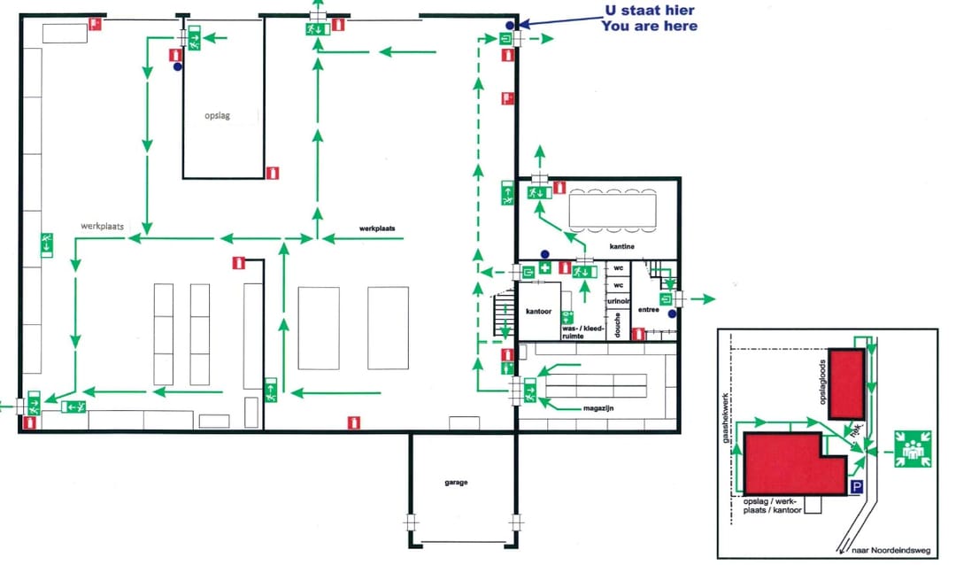 circa 300m² kantoor-/ kantineruimte (verdeeld over begane grond en eerste verdieping)