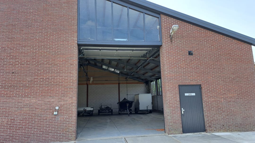 De bedrijfsruimte is 18.5 m¹ breed en circa 19.15 diep en bereikbaar via een toegangspad tussen de Reijerskoop 237 en nummer 247.