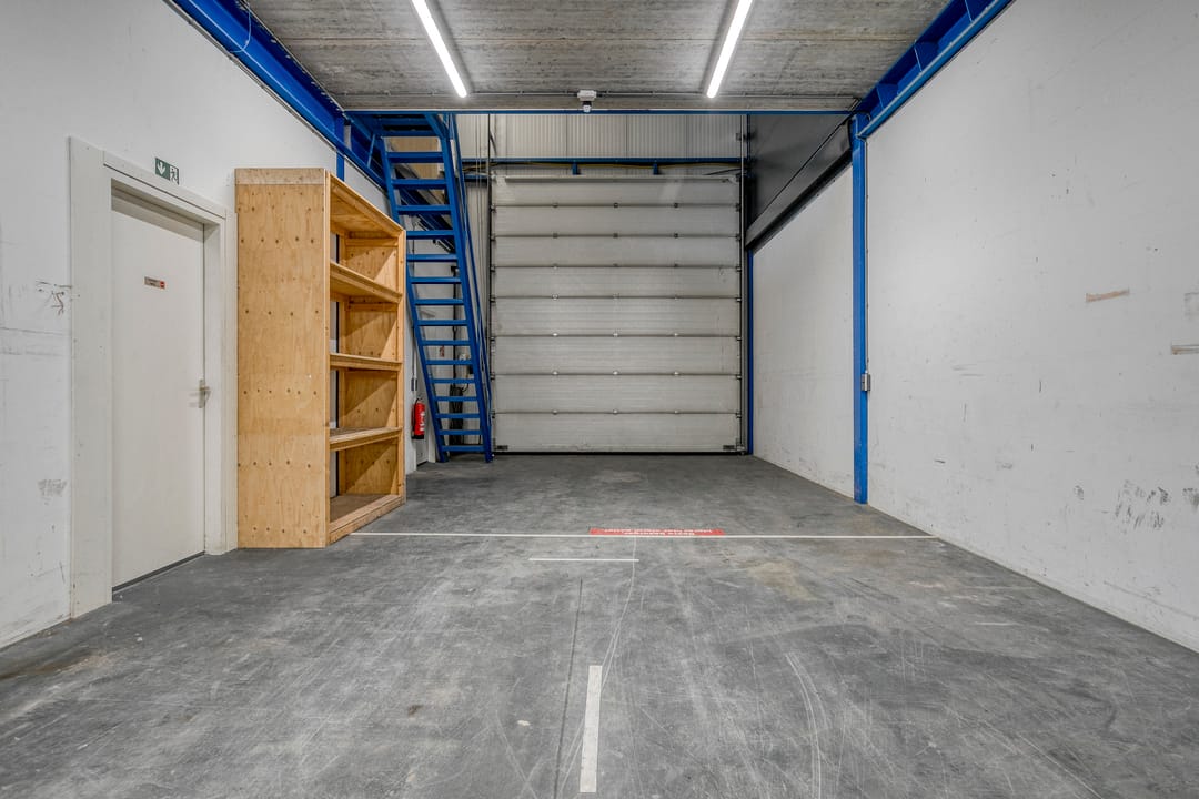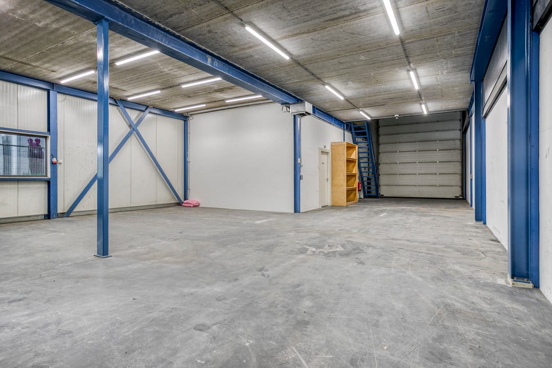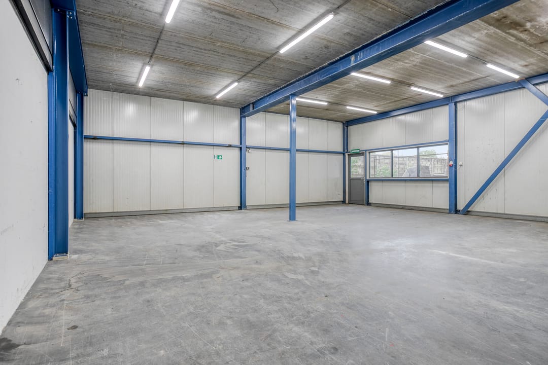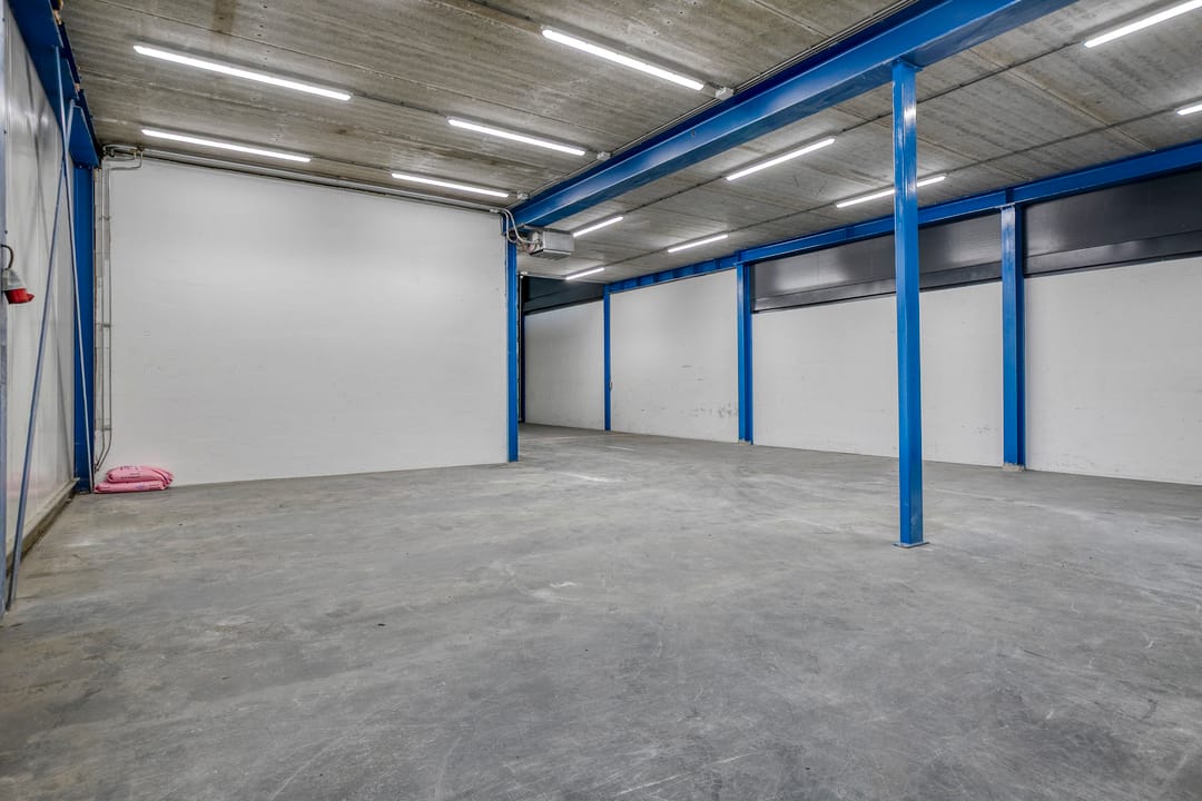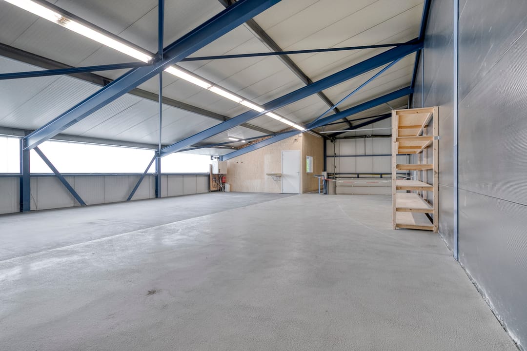 - Overheaddeuren, krachtstroom, betonvloer, toilet, pantry en inbouwarmaturen