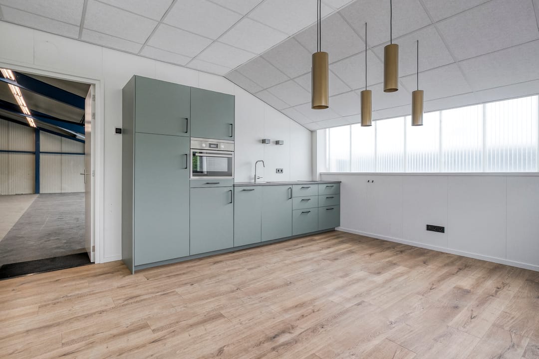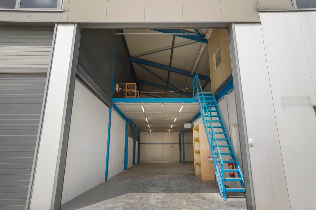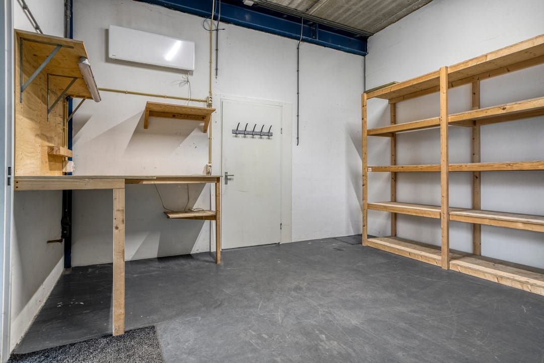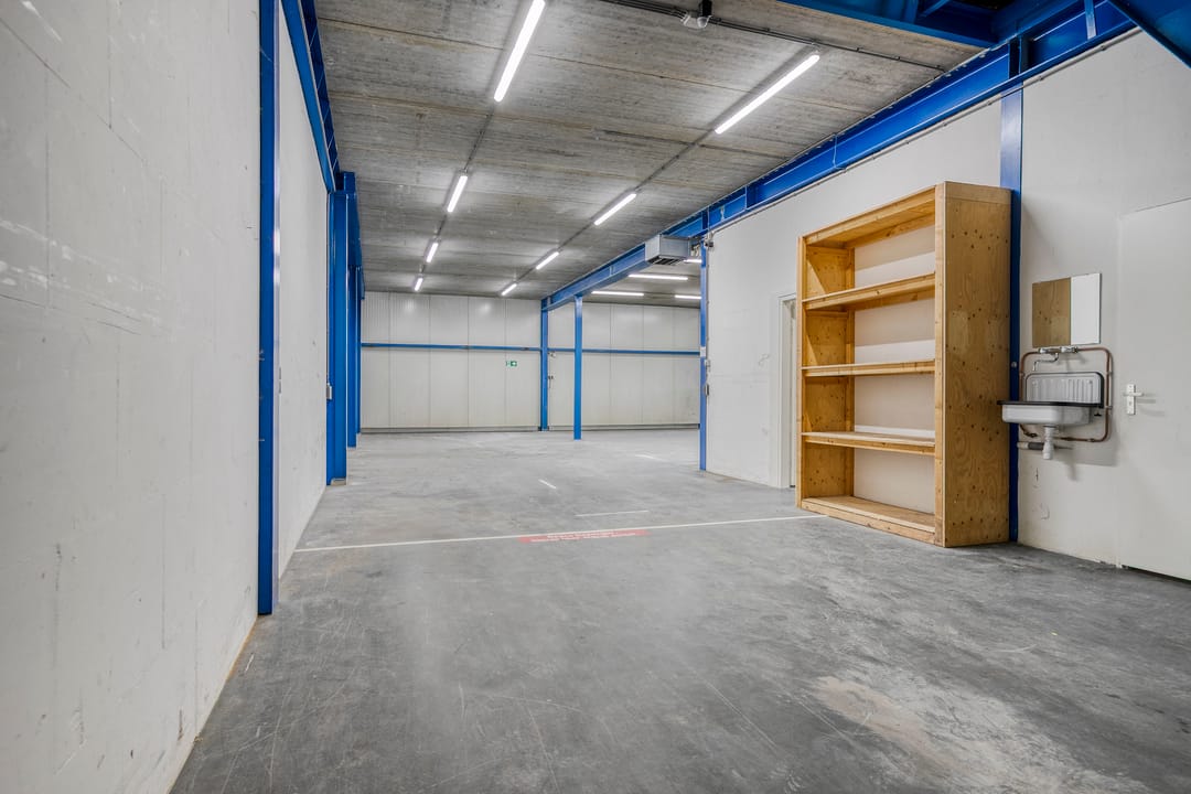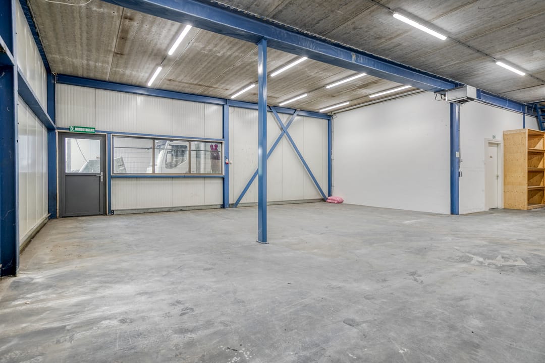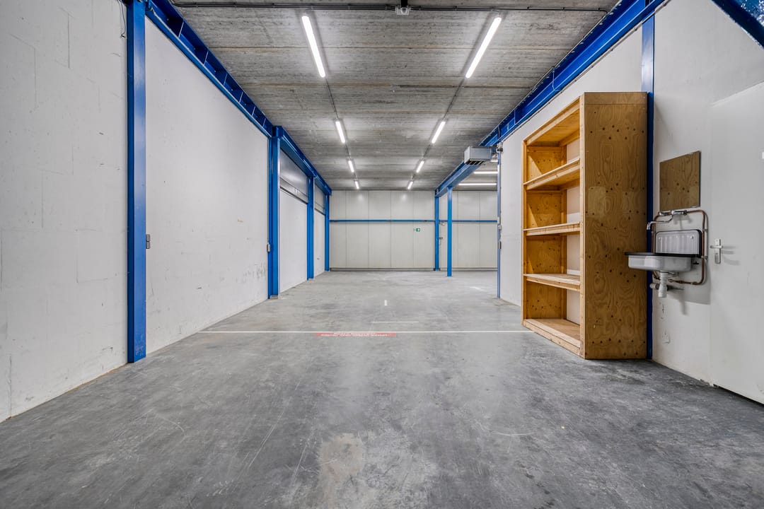 - Overheaddeuren, krachtstroom, betonvloer, toilet, pantry en inbouwarmaturen