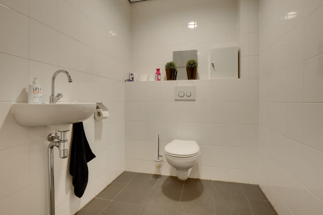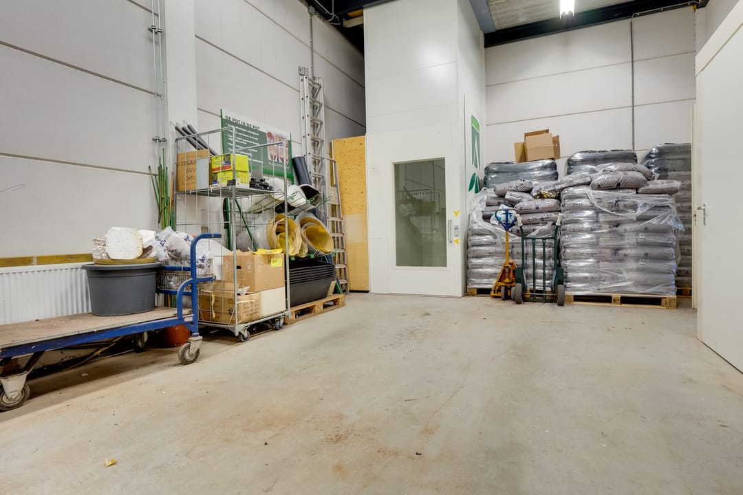 - Mechanische ventilatie, overheaddeuren, betonvloer, toilet, pantry, airconditioning, inbouwarmaturen, liften en te openen ramen