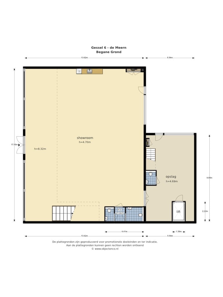 - vrije hoogte showroom ca. 4,7 tot circa 8,3 meter